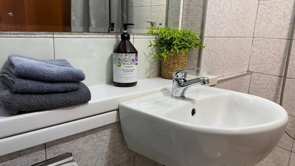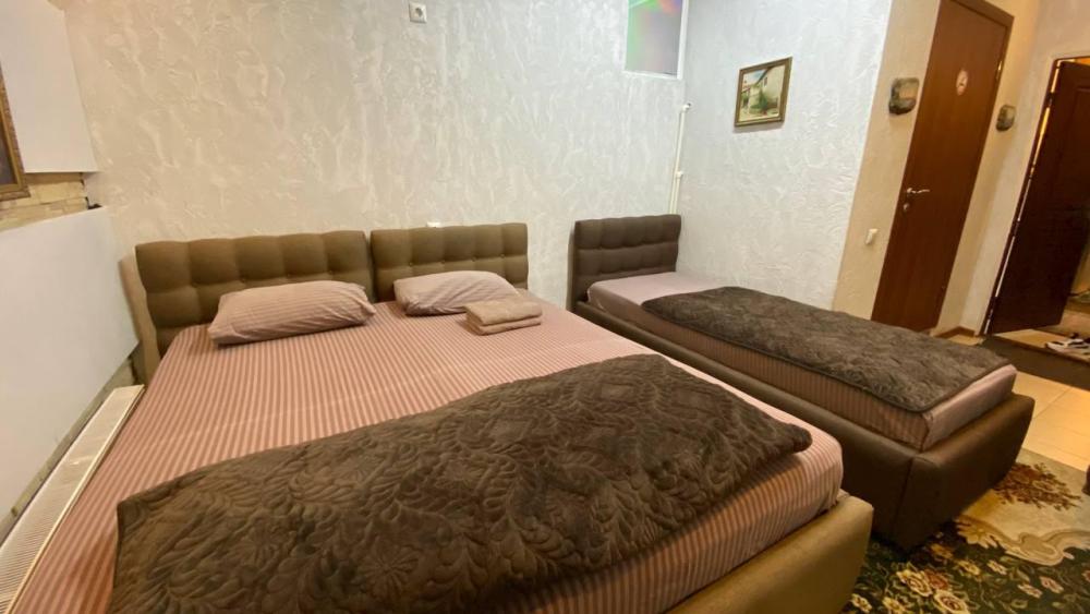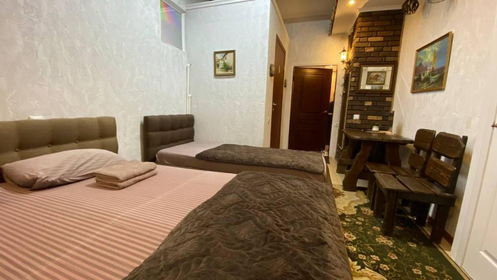 Уютный просторный номер с одной двуспальной, односпальной и кресло кроватью со всеми удобствами.