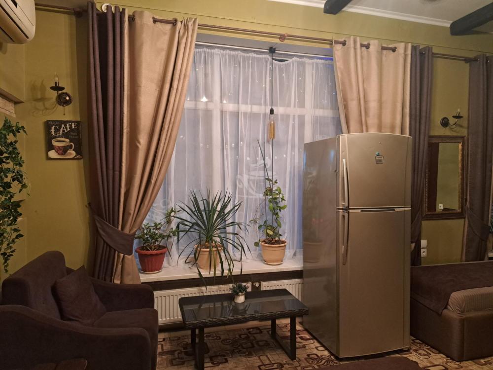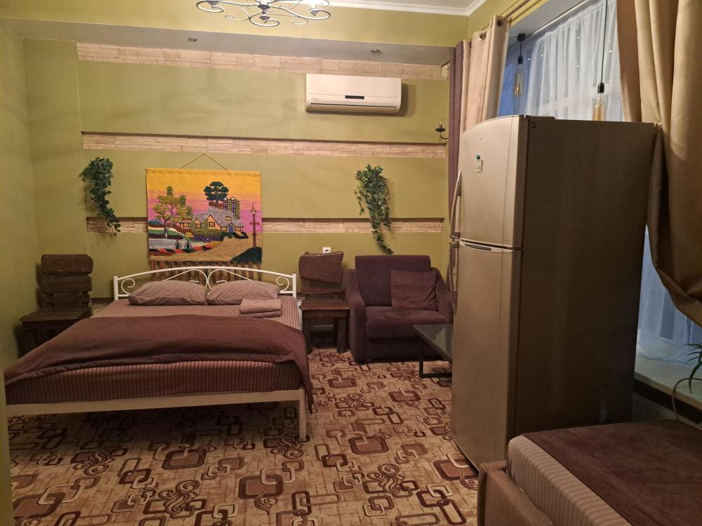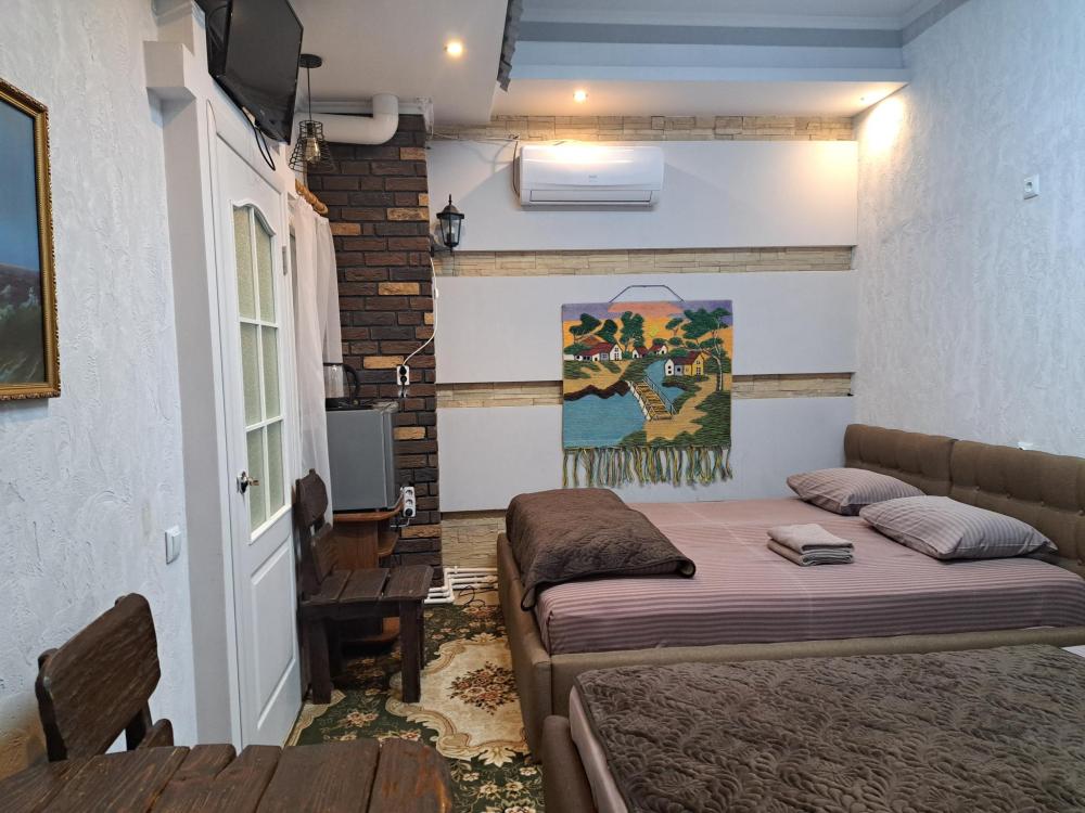 Отдельный номер с двуспальной кроватью и раскладывающимся полуторным диваном. Оснащен: отдельный вход, ТВ, холодильник, кондиционер, с/у с душем, собственная кухонная зона. Свежее постельное белье и полотенца.