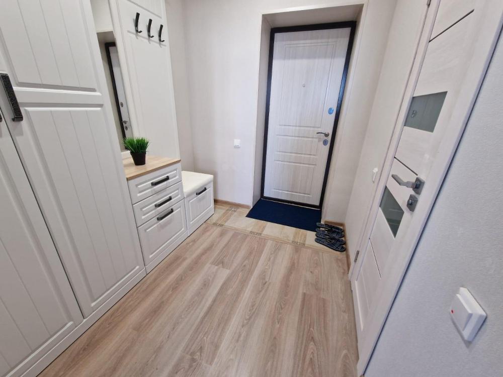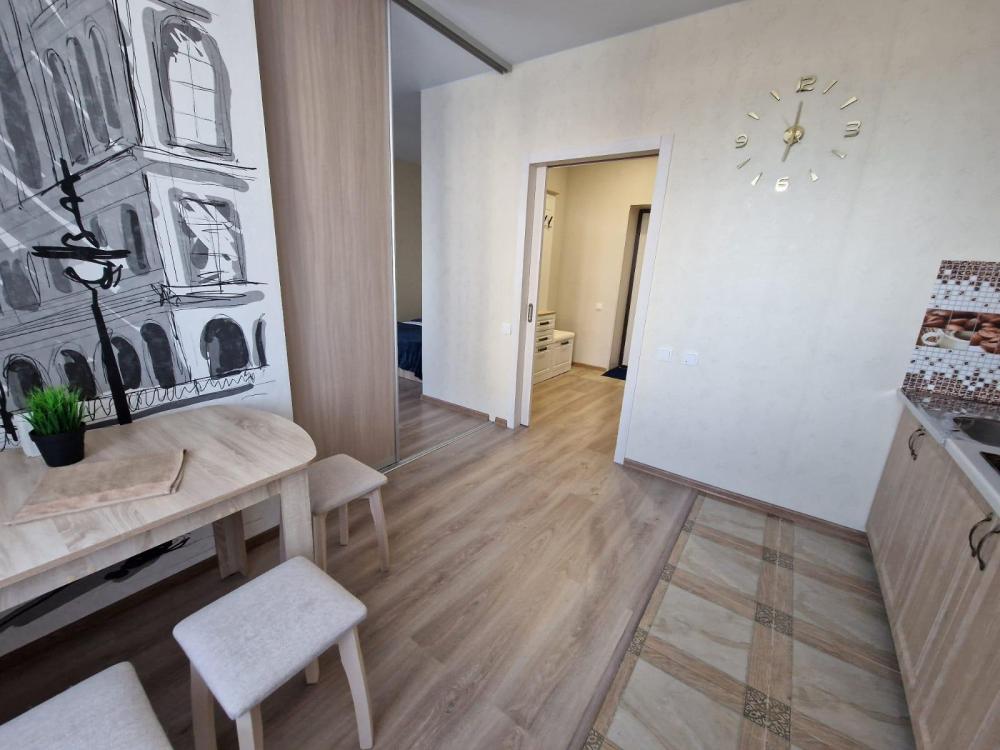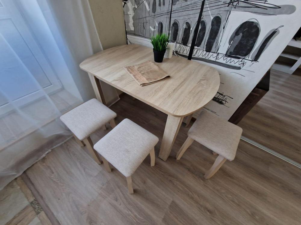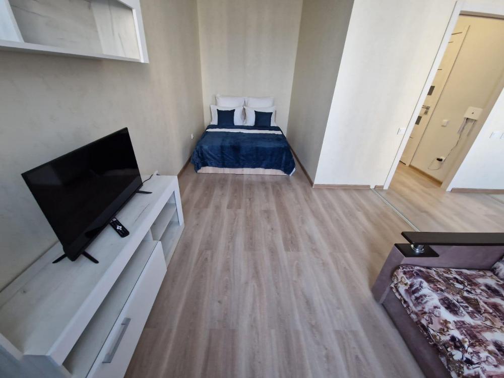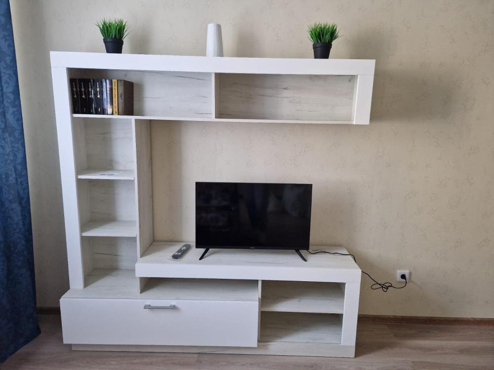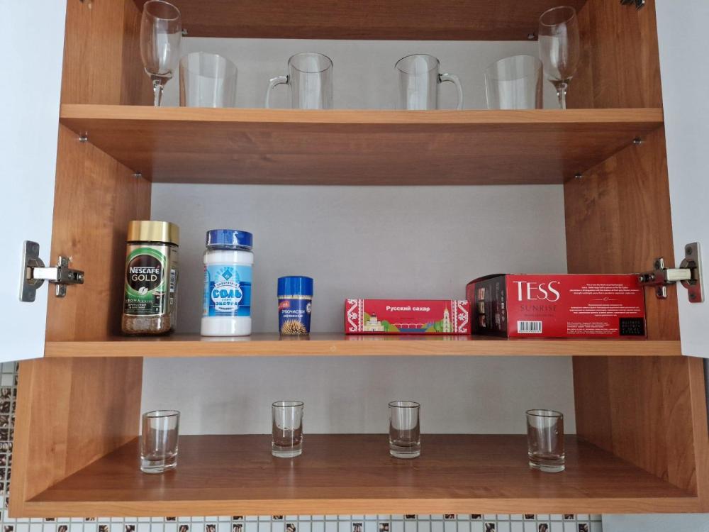 В апартаментах есть мебель и техника: комфортная двуспальная кровать, раскладной диван, вместительный шкаф, ЖК-телевизор, стиральная машина, утюг, микроволновая печь, холодильник и чайник. На кухне предусмотрены всё необходимое для приготовления и сервировки блюд, включая чай, кофе, сахар, соль, подсолнечное масло, салфетки и зубочистки. Для работы и отдыха предоставлены Wi-Fi и кабельное телевидение. Также мы обеспечиваем чистое постельное бельё и полотенца.