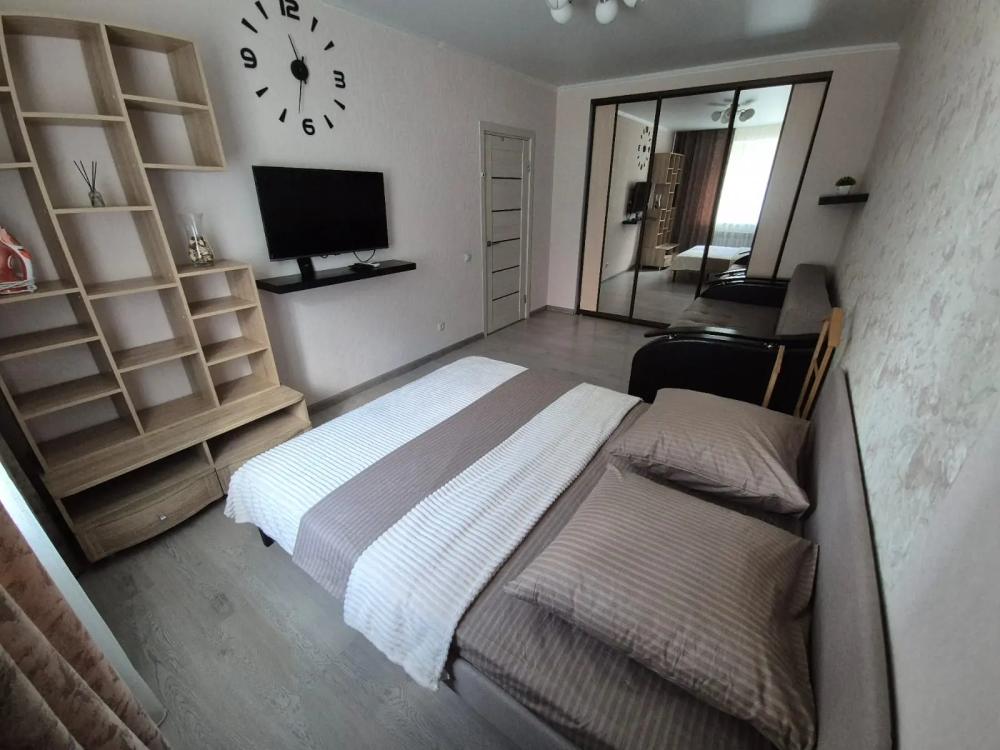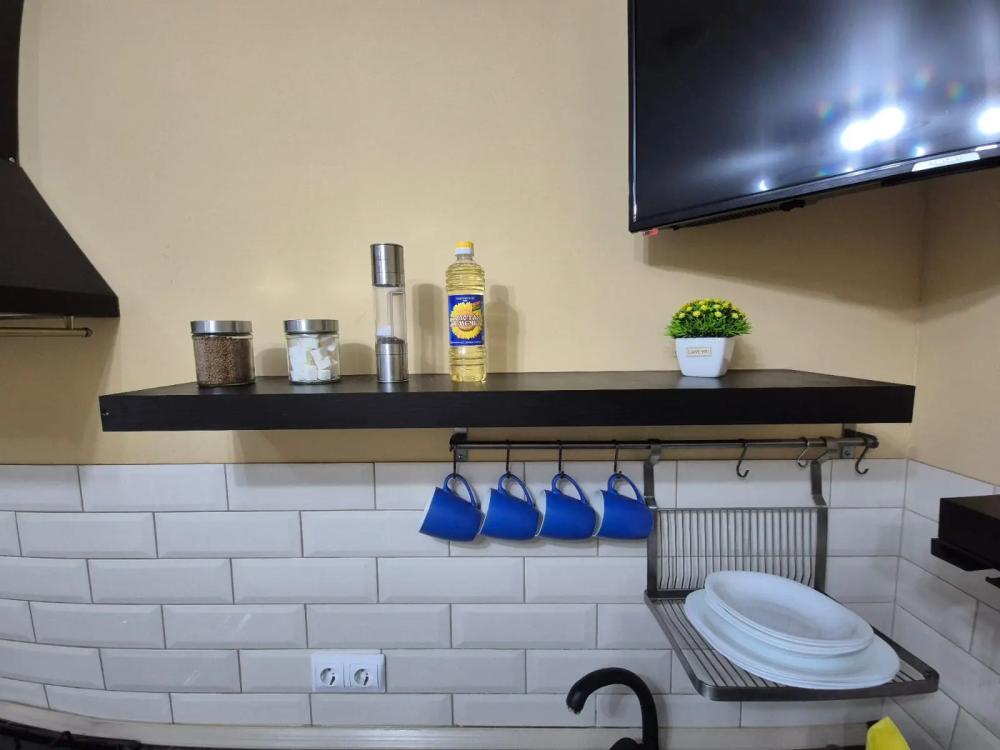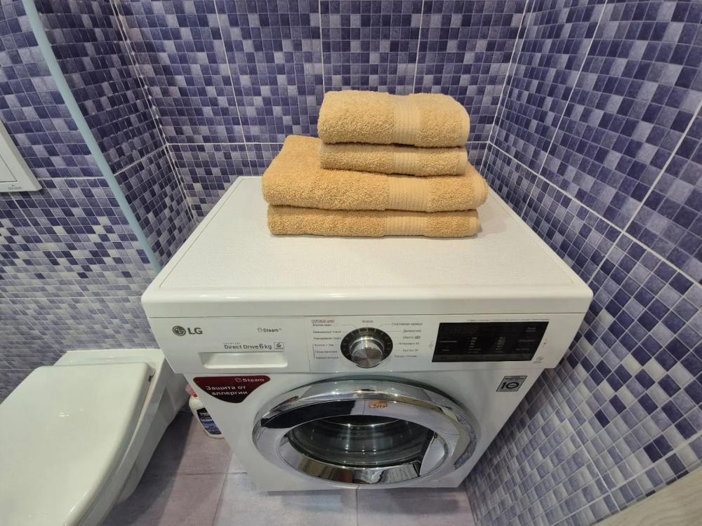 Уютные апартаменты, оборудованные всем необходимым для комфортного проживания. Полное оснащение техникой: утюг, микроволновая печь, ЖК-телевизор, холодильник, стиральная машина, чайник. Мебель: комфортная двуспальная кровать, диван-кровать и вместительный шкаф. Кухня: вся необходимая посуда для готовки и приёма пищи. Интернет и ТВ скоростной Wi-Fi и кабельное телевидение. Свежие постельные принадлежности и полотенца включены. Уборка проводится после каждого гостя.