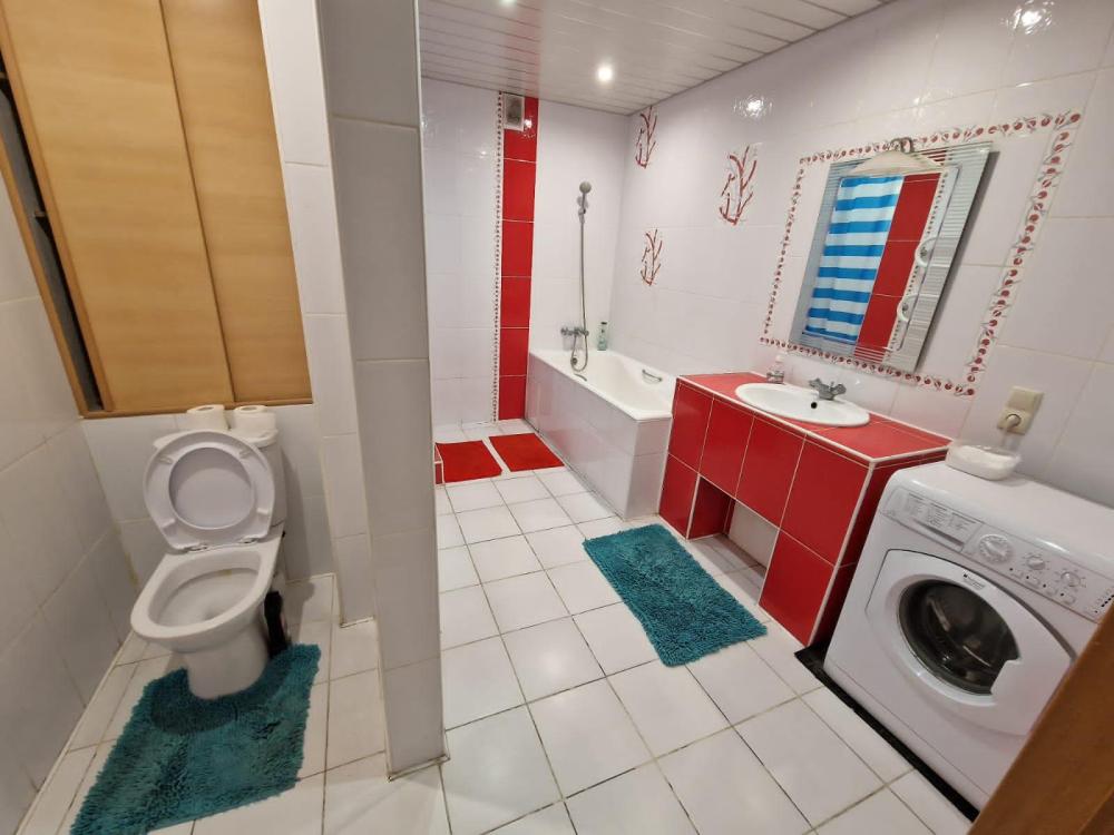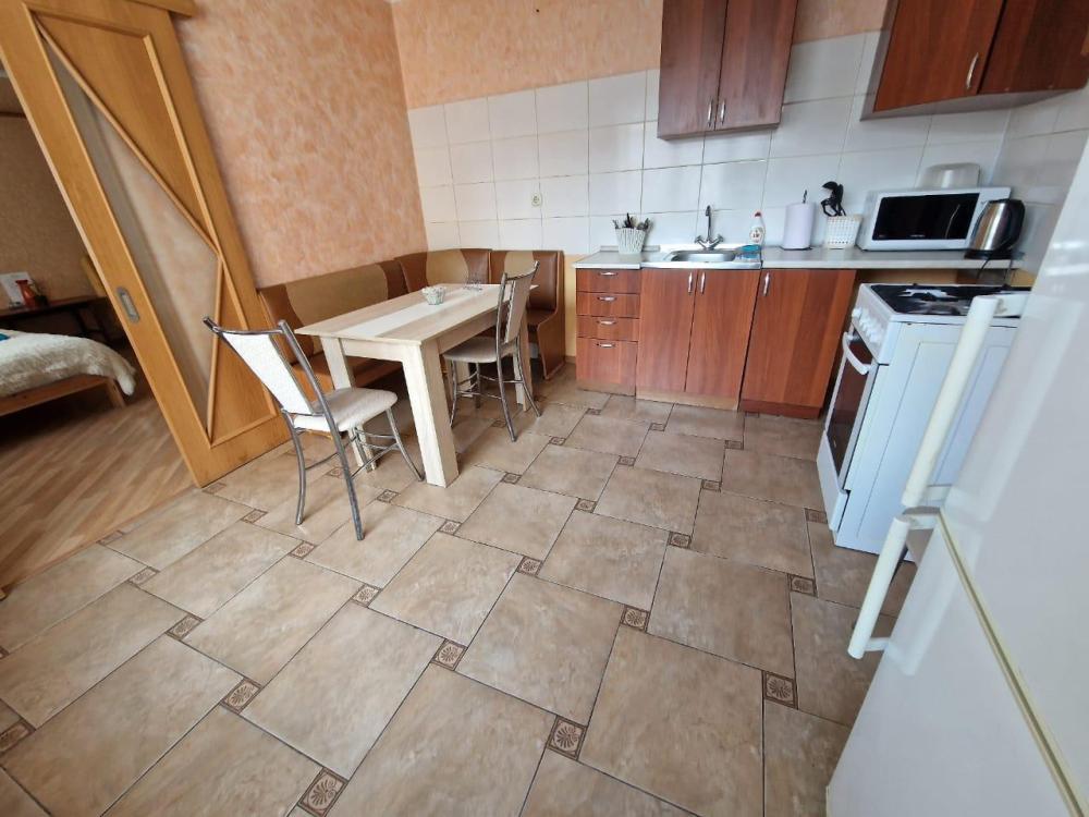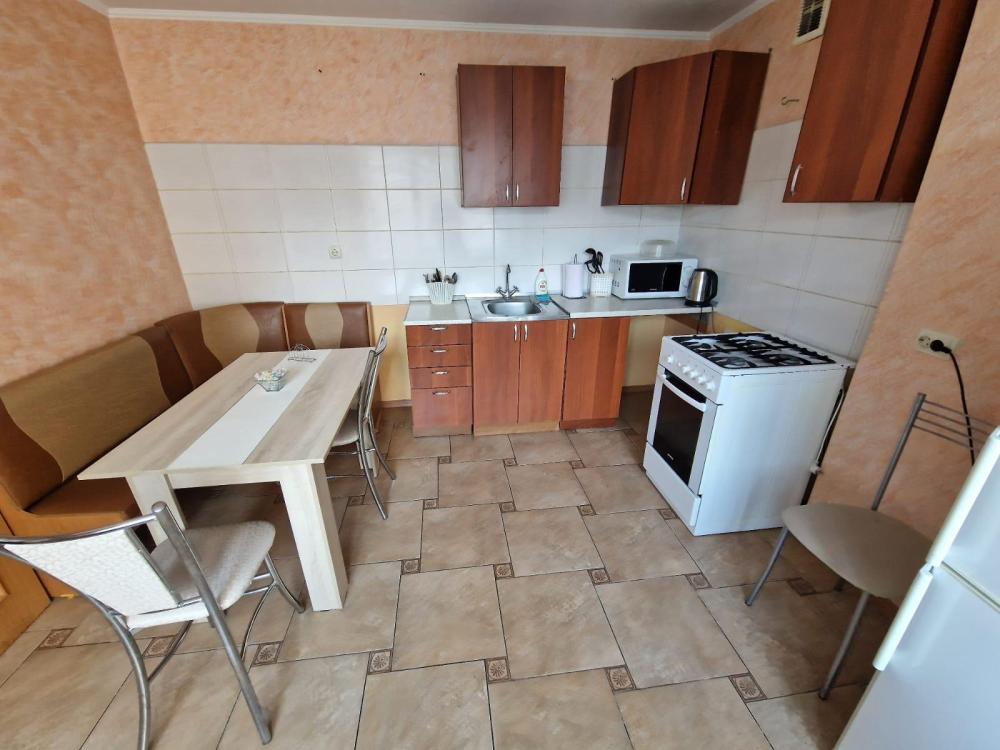 В апартаментах выполнен современный ремонт в светлых тонах, есть полный набор бытовой техники: утюг, микроволновая печь, ЖК-телевизор, холодильник, стиральная машина и электрический чайник. Мебель включает двуспальную кровать, удобный диван-кровать и дополнительные спальные места. Кухня оснащена необходимой посудой для приготовления и приёма пищи. Для связи и развлечений предоставлены скоростной Wi-Fi и кабельное телевидение. Также мы обеспечиваем свежее постельное бельё и полотенца.