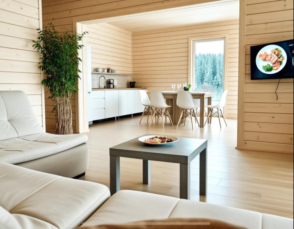 Двухэтажный дом 135 кв. м. с панорамным остеклением посреди уникальной карельской природы, в 400м от знаменитого курорта «Дача Винтера». Расположение: До города Сортавала 5 км с ресторанами и супермаркетами. В 5 минутах ходьбы вас будет ждать первоклассный панорамный ресторан «Густав Винтер» с аутентичной кухней Карелии. Также в Парк-отеле «Дача Винтера» есть спа-комплекс с горячим джакузи под открытым небом. В доме есть все необходимое для комфортного проживания: на первом этаже расположены кухня-гостиная и санузел, на втором этаже - 3 спальни, телевизор, wi fi, кондиционер, постельное белье, полотенца, гигиенические средства, оборудованная кухня, холодильник, электрический чайник, посуда для приготовления и сервировки, санузел, фен, стиральная машина, утюг, гладильная доска.