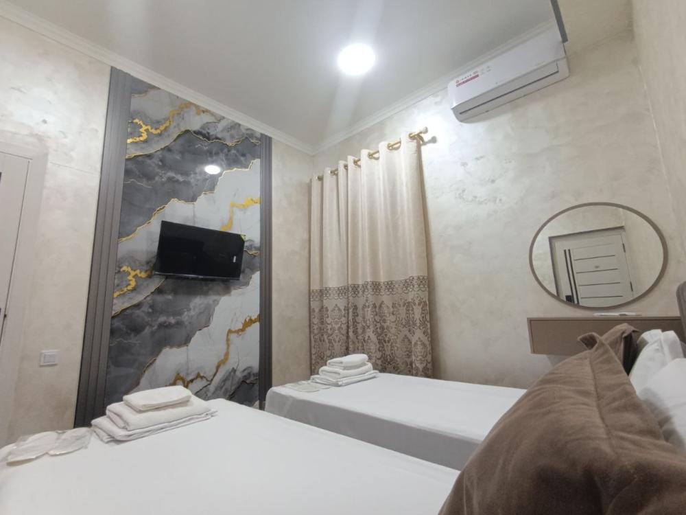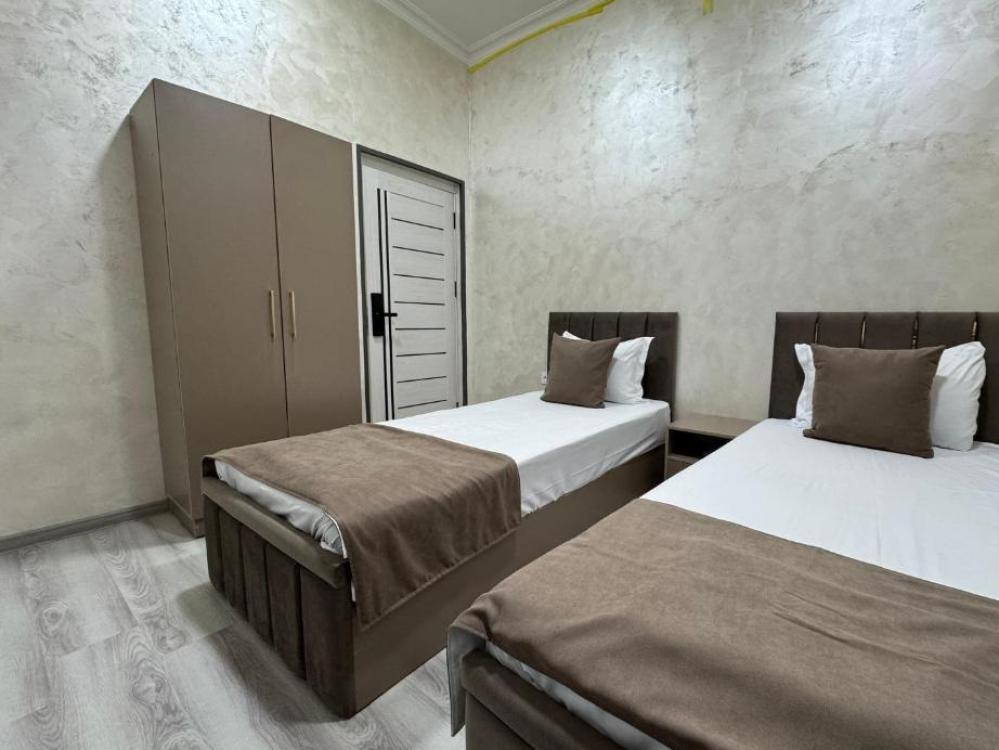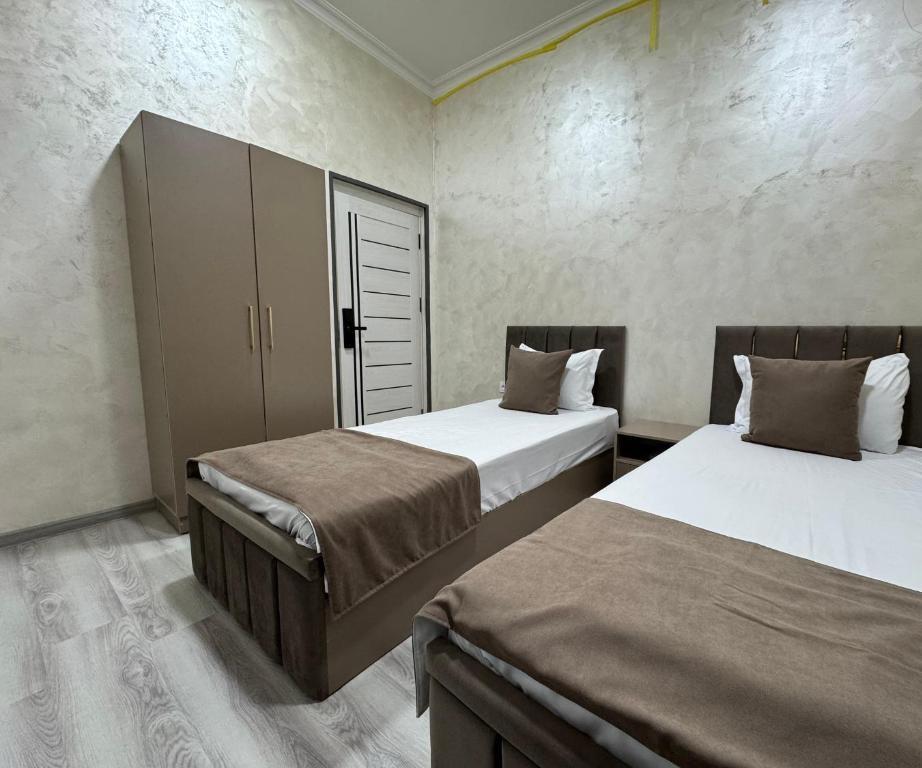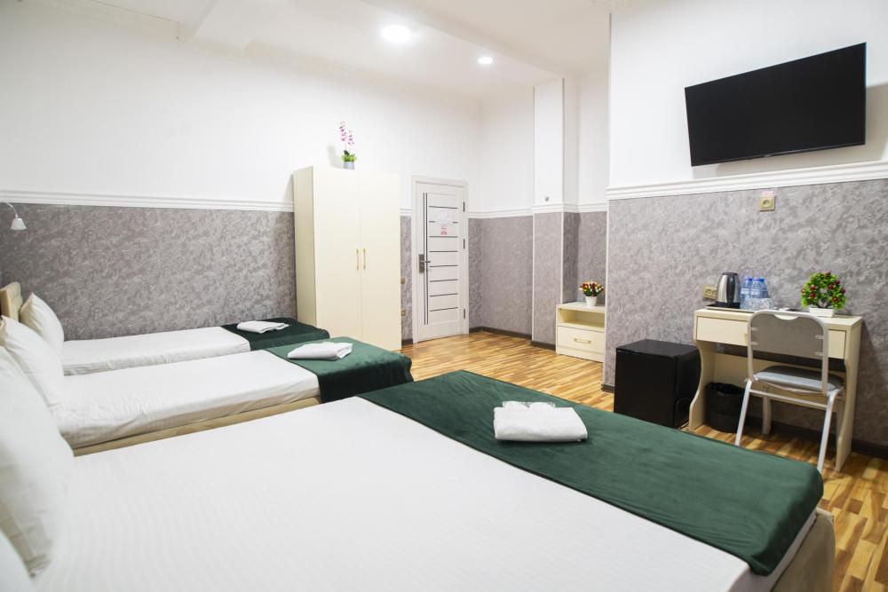 Стандартный четырёхместный номер. В номере расположены четыре комфортные односпальные кровати с чистым постельным бельём, мягким освещением и спокойным современным интерьером. К услугам гостей — собственный санузел с горячим душем, свежими полотенцами и необходимыми гигиеническими принадлежностями. В номере также доступен бесплатный высокоскоростной Wi-Fi, удобные места для хранения вещей, рабочая поверхность и розетки возле каждой кровати.