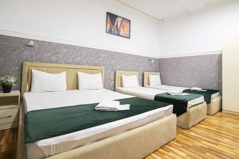 Стандартный трёхместный номер. В номере расположены три удобные односпальные кровати с качественным постельным бельём и продуманным освещением. Гости могут пользоваться собственным санузлом с горячим душем, свежими полотенцами и необходимыми гигиеническими принадлежностями. В номере также есть бесплатный Wi-Fi, место для хранения вещей, рабочий стол/поверхность и розетки у каждой кровати.
