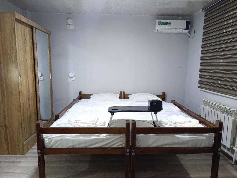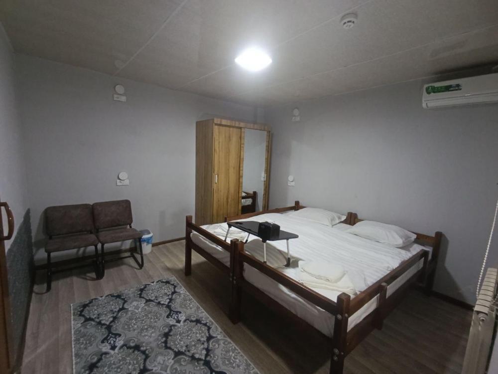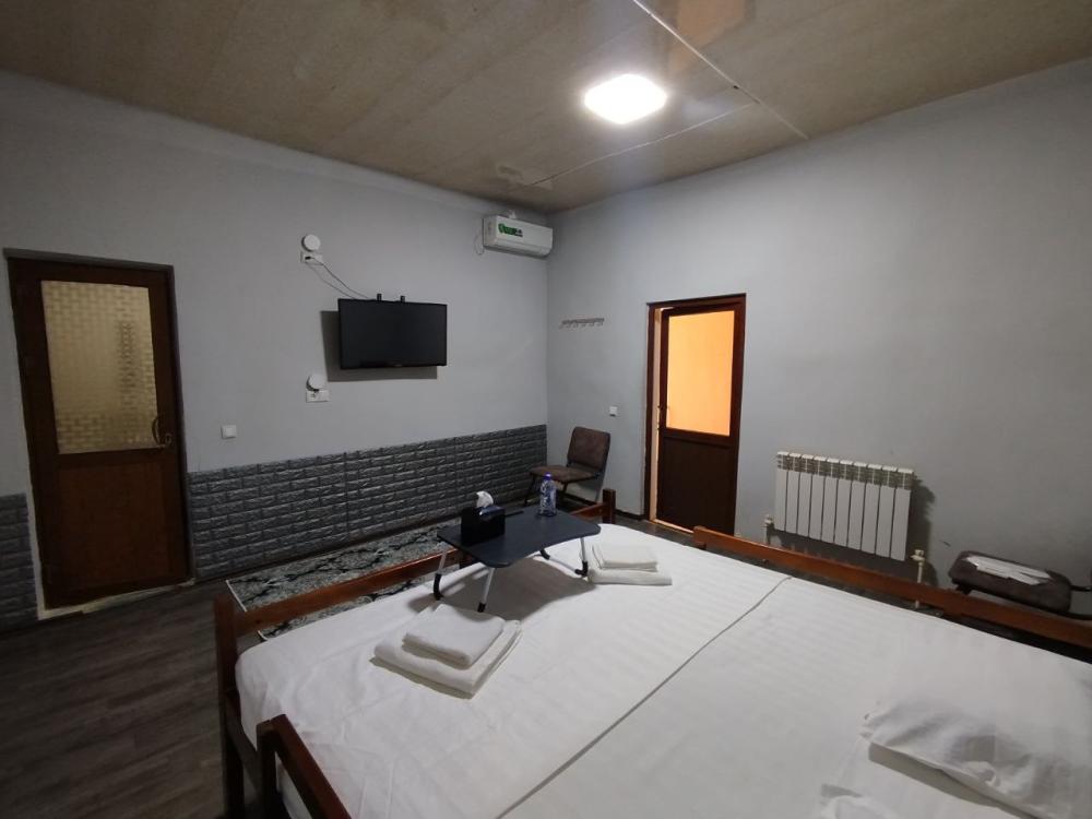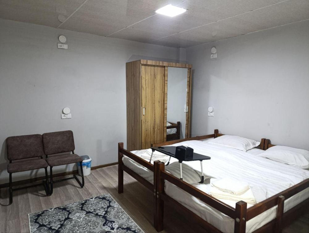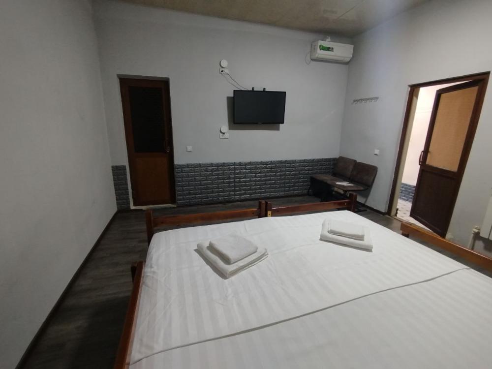 Уютный номер с большой двуспальной кроватью, идеально подходит для комфортного отдыха. В номере имеется собственный санузел с душем и всеми необходимыми принадлежностями.