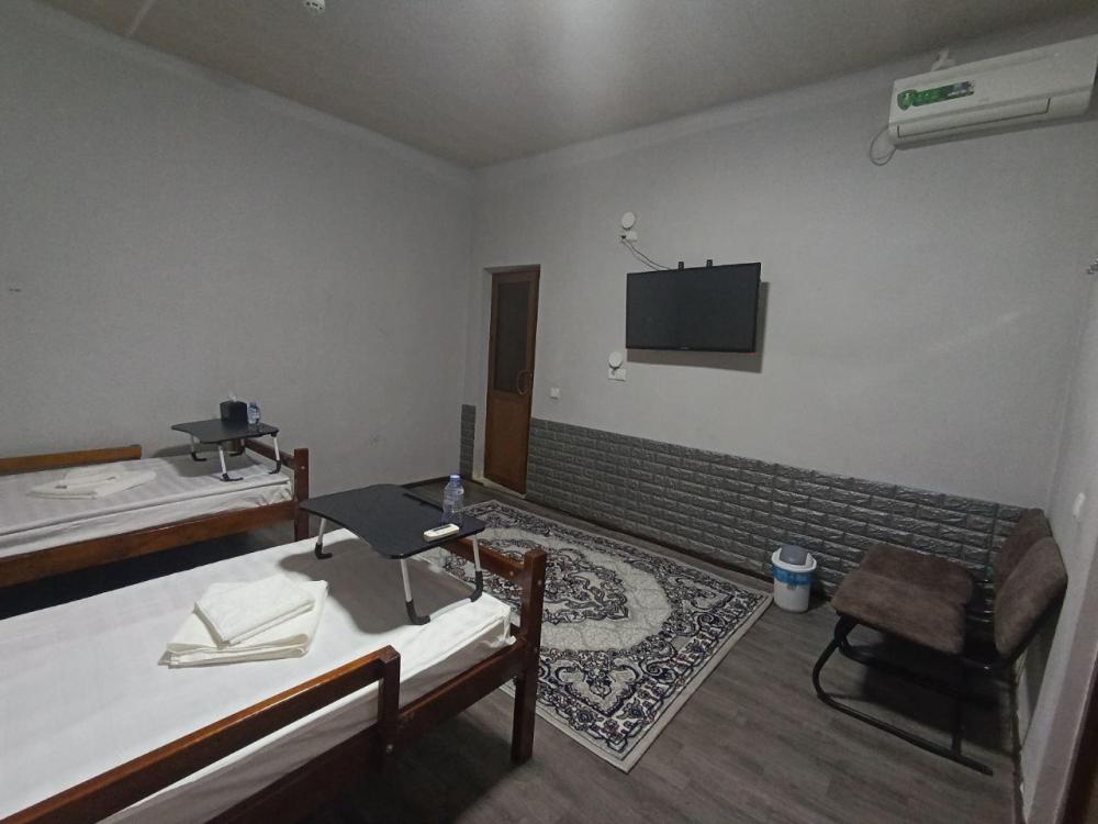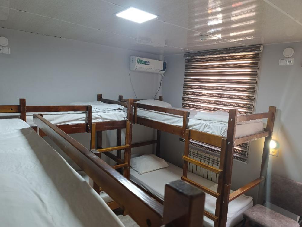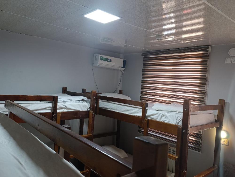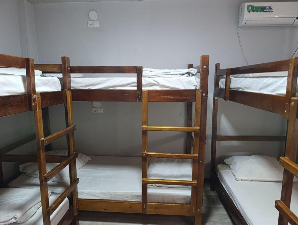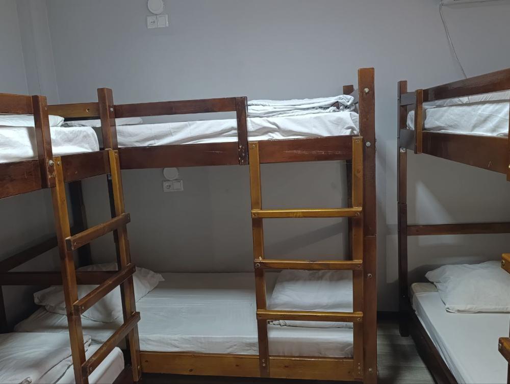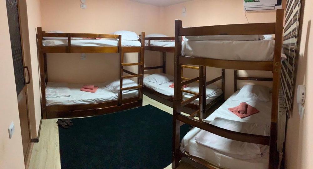 Общий шестиместный номер для мужчин и женщин с удобными двухъярусными кроватями. У каждой кровати есть розетка и индивидуальная лампа. В номере установлен кондиционер. Санузел общий, расположен рядом. Гостям предоставляются полотенца, тапочки, шампунь и мыло.