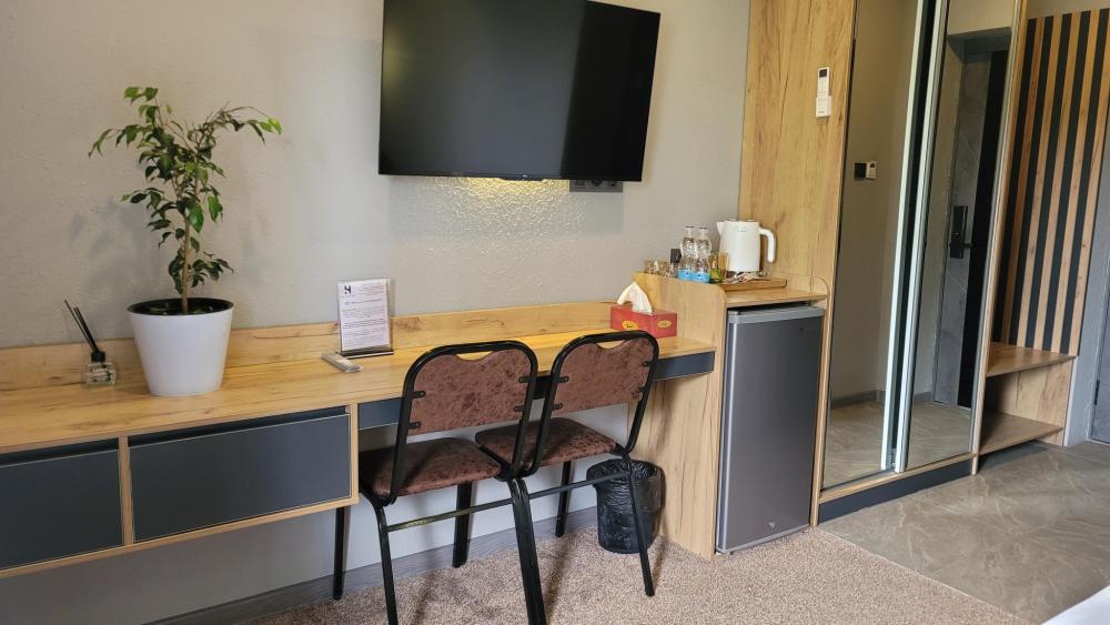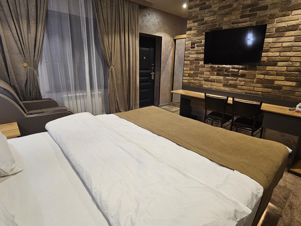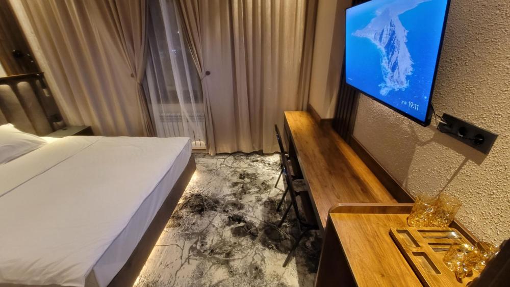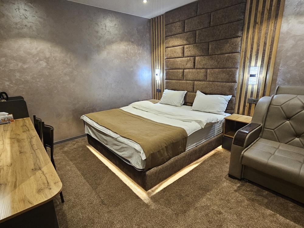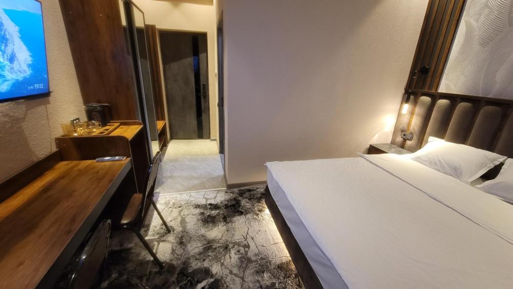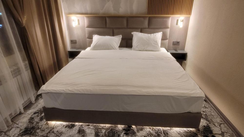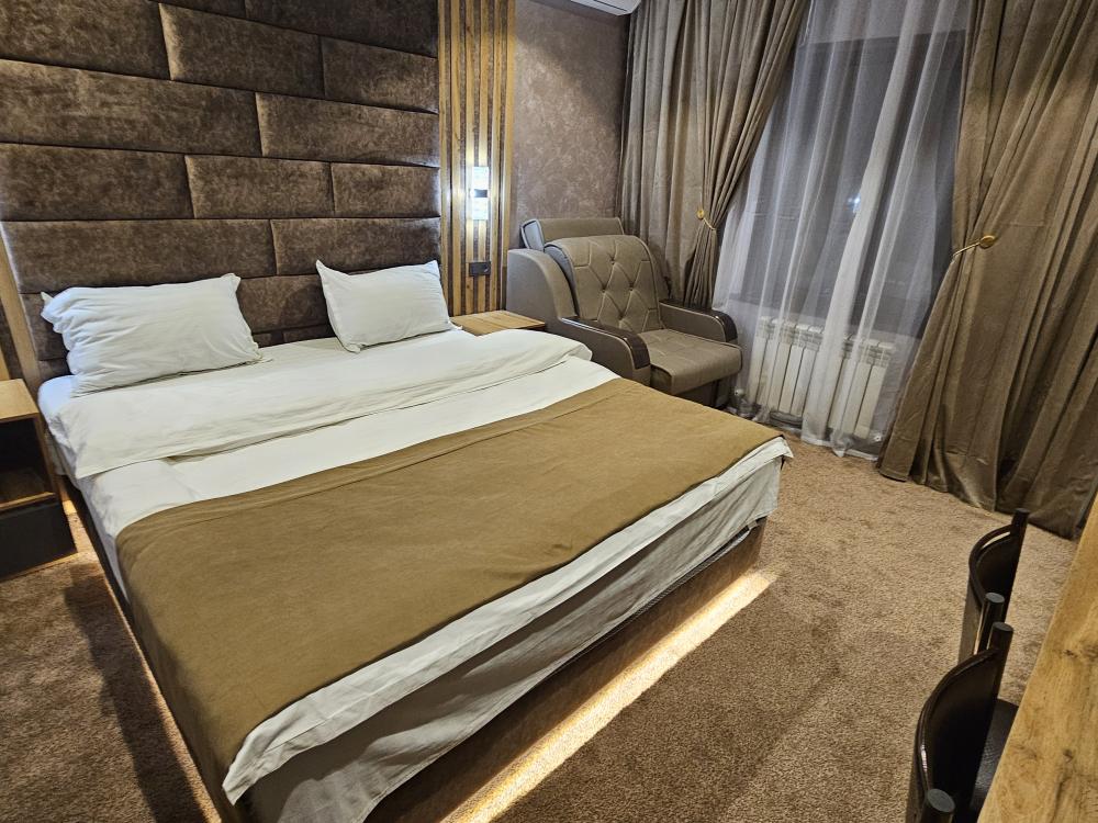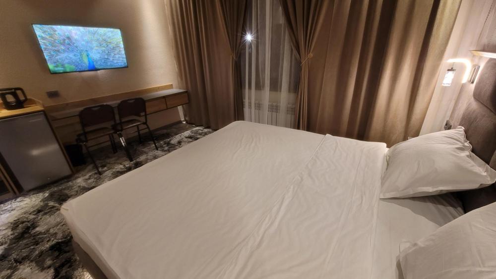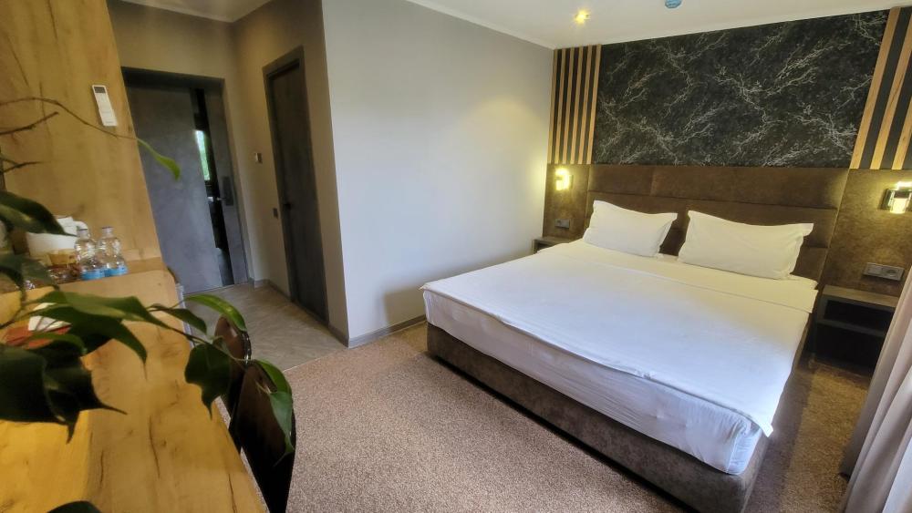 Улучшенный просторный номер Deluxe с одной двуспальной кроватью (DBL) и раскладным креслом. В номере создана гармоничная атмосфера благодаря лаконичному luxury-дизайну, мягким тёплым оттенкам и продуманным деталям. Здесь есть всё для комфортного проживания: большая и мягкая двуспальная кровать, быстрый бесплатный Wi-Fi, Smart TV с YouTube, Netflix и международными каналами, электронный замок и система входа по карте, мини-холодильник, электрический чайник, чай и растворимый кофе Nescafé