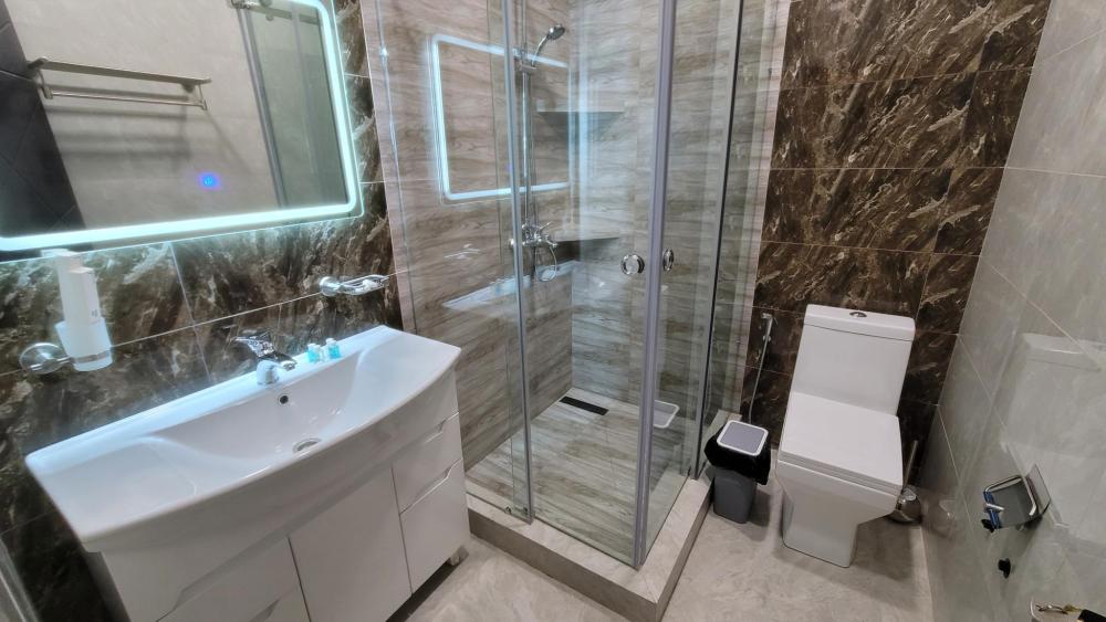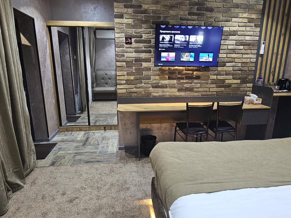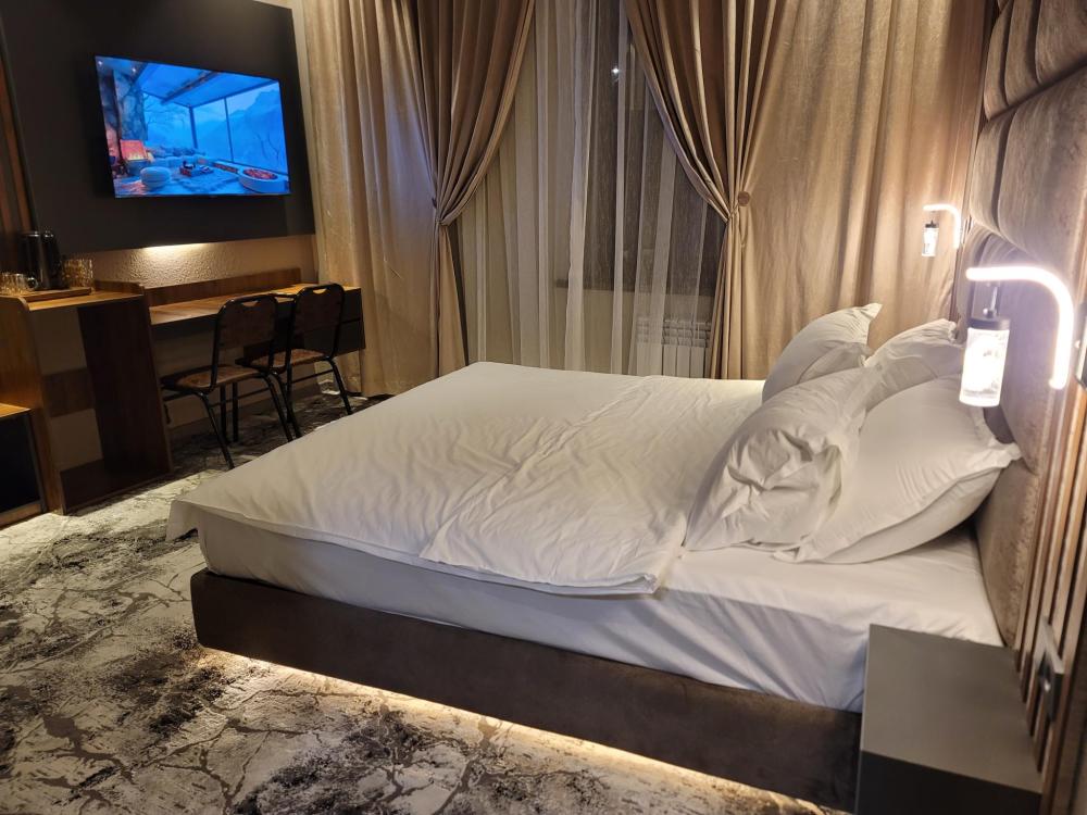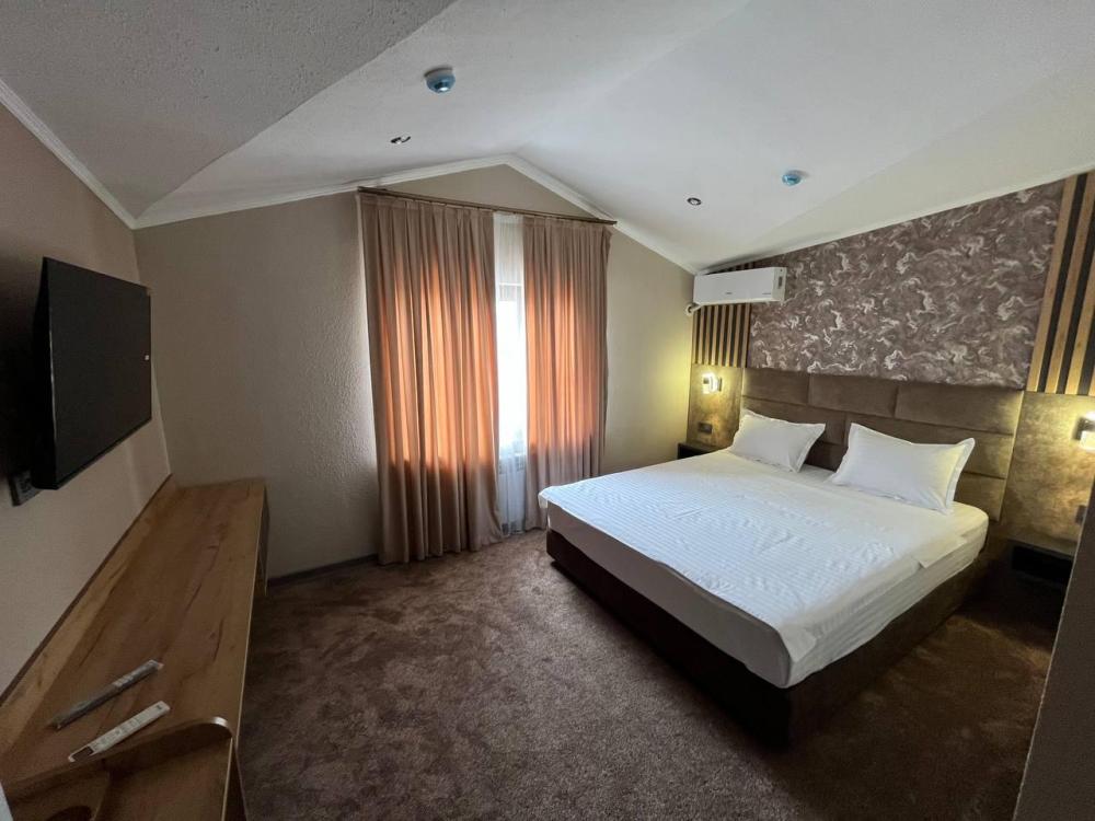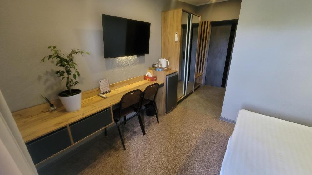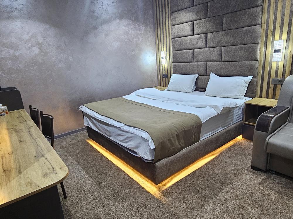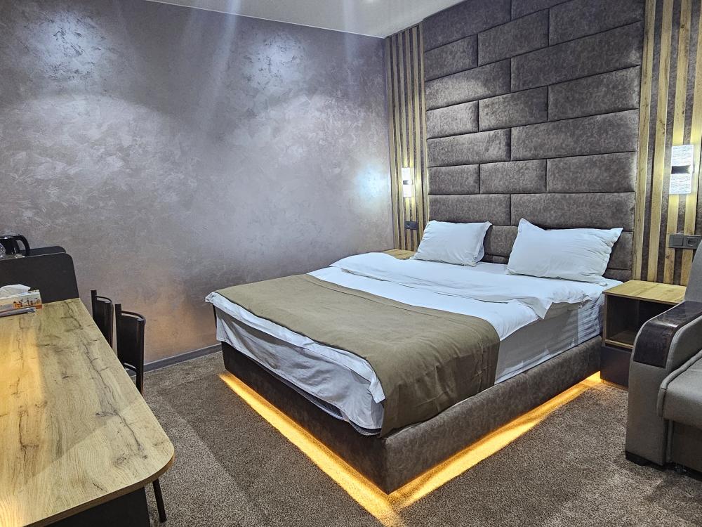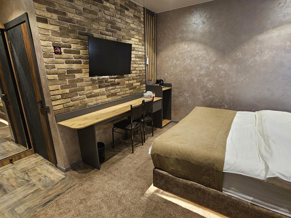 Улучшенный просторный номер Deluxe с одной двуспальной кроватью (DBL) и раскладным креслом. В номере создана гармоничная атмосфера благодаря лаконичному luxury-дизайну, мягким тёплым оттенкам и продуманным деталям. Здесь есть всё для комфортного проживания: большая и мягкая двуспальная кровать, быстрый бесплатный Wi-Fi, Smart TV с YouTube, Netflix и международными каналами, электронный замок и система входа по карте, мини-холодильник, электрический чайник, чай и растворимый кофе Nescafé
