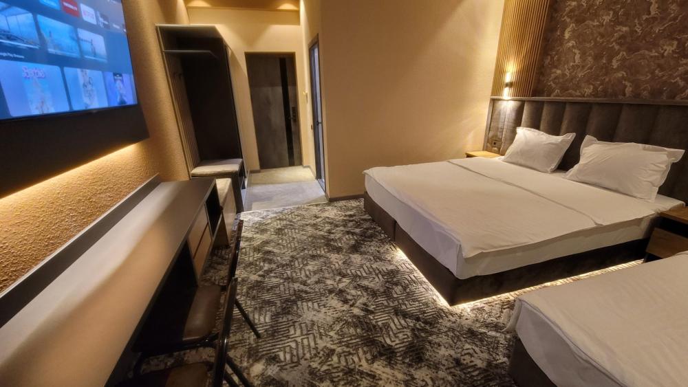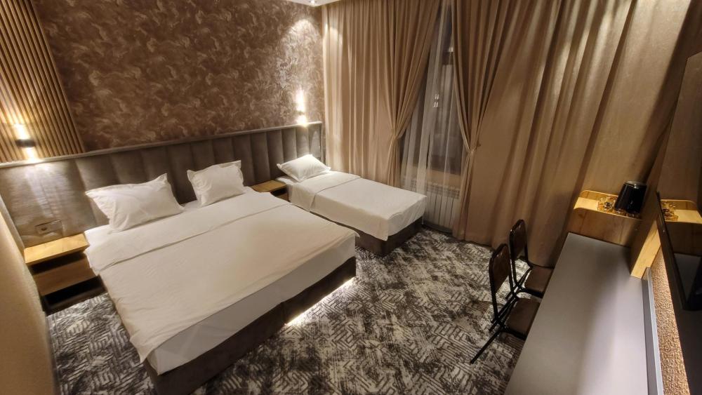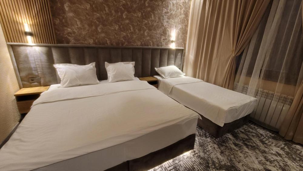 Улучшенный просторный семейный номер Deluxe с одной двуспальной кроватью (DBL) + с одной односпальной кроватью (SNGL). В номере создана гармоничная атмосфера благодаря лаконичному luxury-дизайну, мягким тёплым оттенкам и продуманным деталям. Здесь есть всё для комфортного проживания: быстрый бесплатный Wi-Fi, Smart TV с YouTube, Netflix и международными каналами, электронный замок и система входа по карте, мини-холодильник, электрический чайник, чай и растворимый кофе