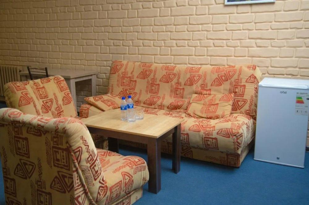 Трехместный улучшенный семейный номер с одной двуспальной и одной односпальной кроватями. В номере телевизор, кондиционер, шкаф для одежды, мебель, зеркало, отдельная ванная комната с душем, феном и тапочками.