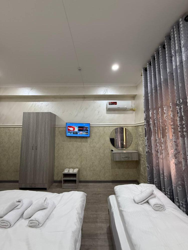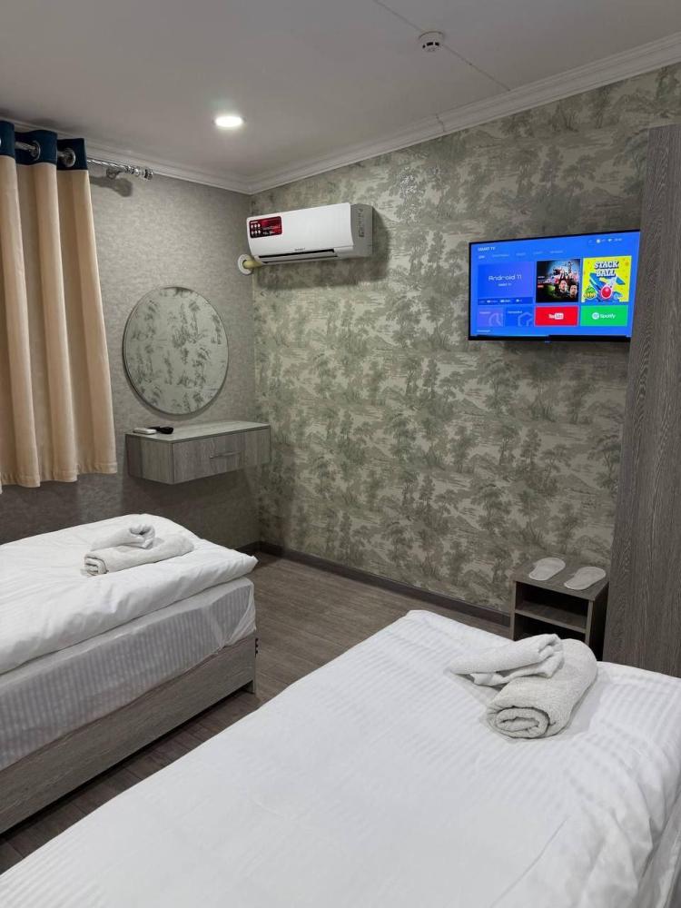 Двухместный стандартный номер с двумя односпальными кроватями. В номере телевизор, кондиционер, шкаф для одежды, мебель, зеркало, отдельная ванная комната с душем.