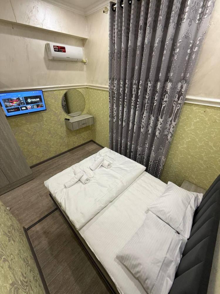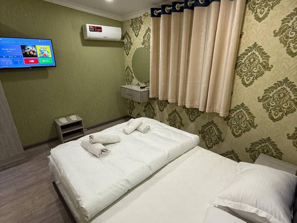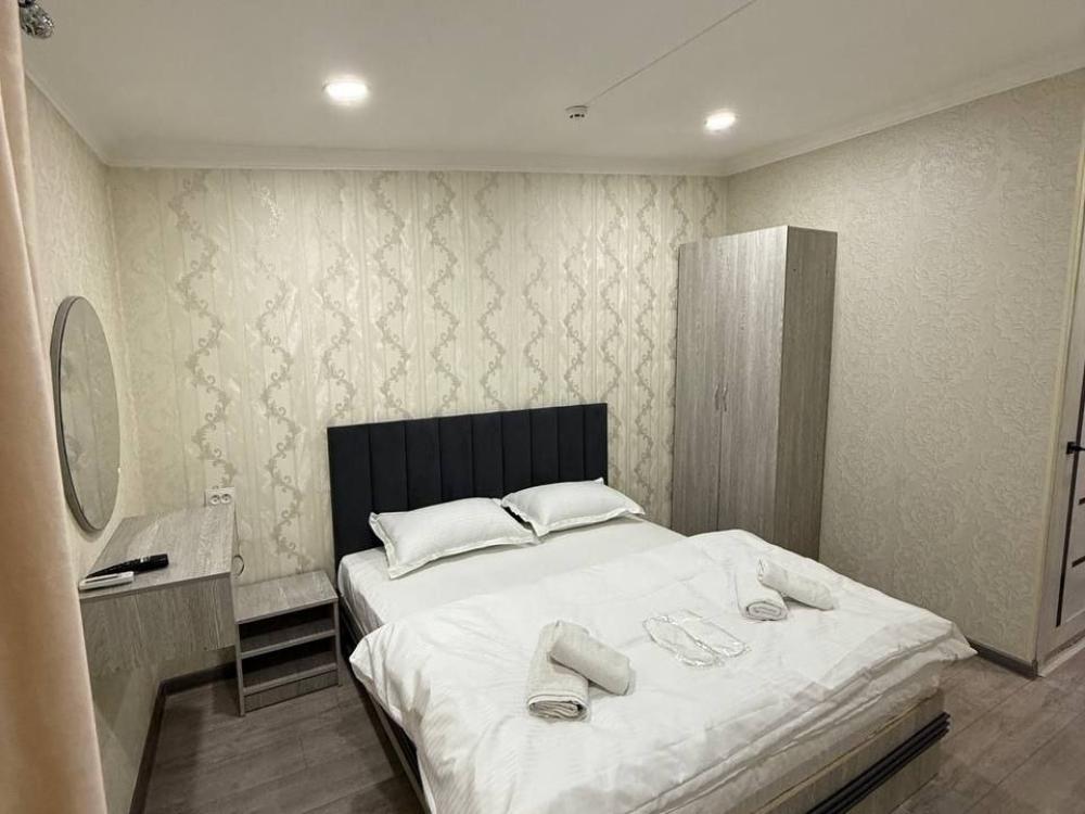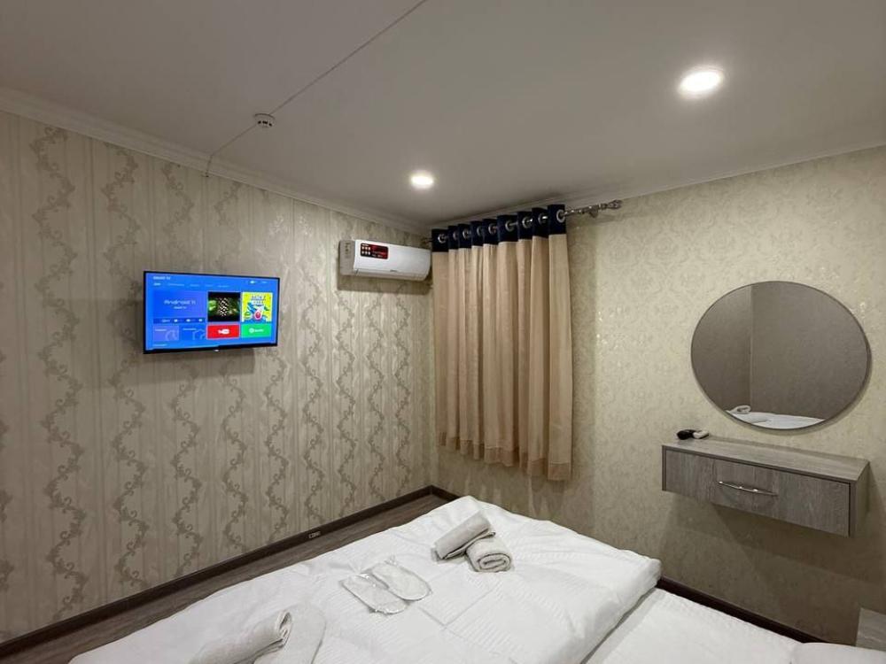 Двухместный стандартный номер с одной двуспальной кроватью. В номере телевизор, кондиционер, шкаф для одежды, мебель, зеркало, отдельная ванная комната с душем.