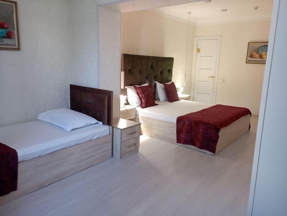 Уютный номер для двух гостей с одной двуспальной и одной односпальной кроватью. В номере есть современная мебель, собственная ванная комната с душем, телевизор, кондиционер, рабочий стол и бесплатный Wi-Fi. Подходит для пар или деловых путешественников.