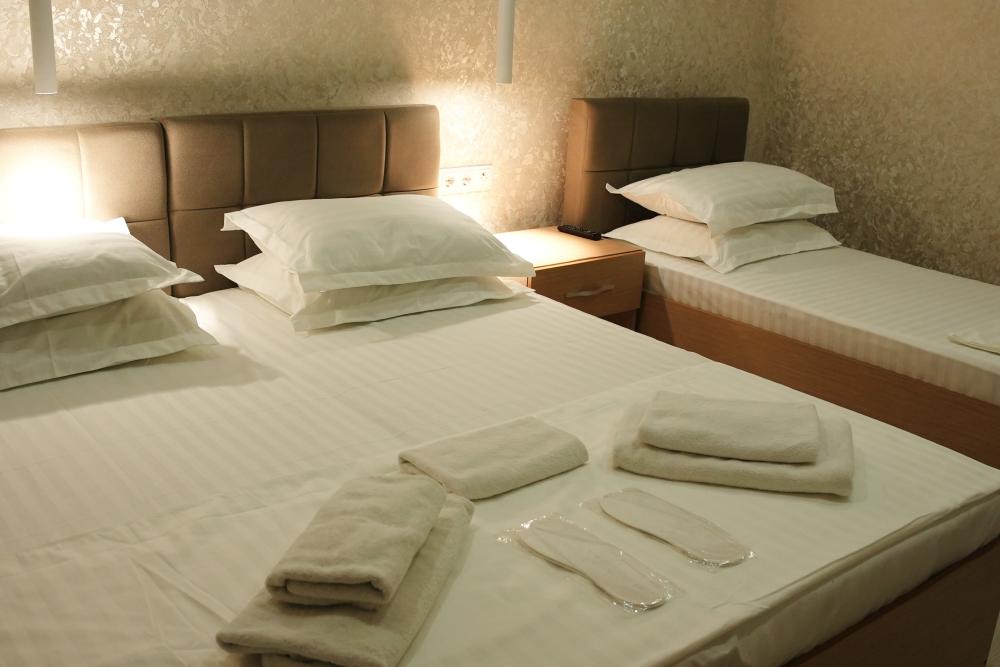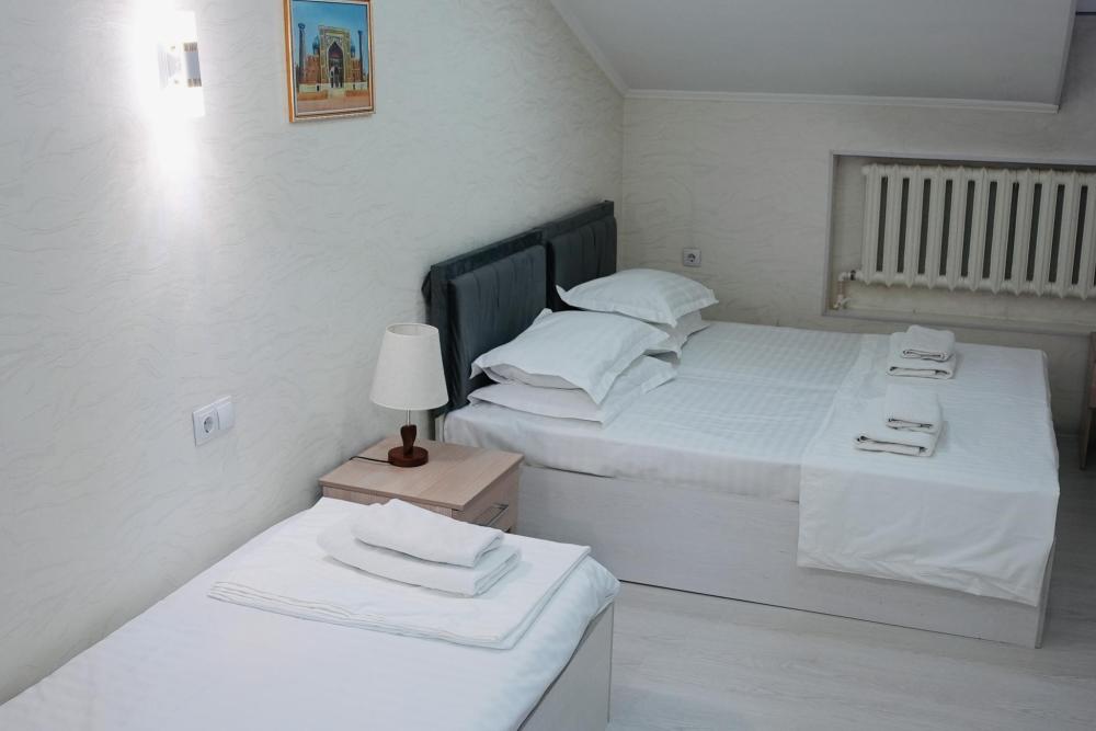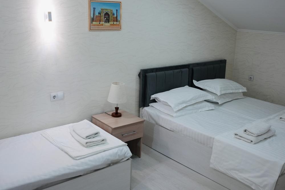 Бюджетный трехместный номер — это уютный и функциональный вариант размещения для трех гостей. В номере есть удобные односпальные кровати, письменный стол и электрический чайник. Для удобства гостей предоставляются кондиционер, телевизор с плоским экраном и спутниковыми каналами, бесплатный Wi-Fi, а также постельное бельё и полотенца. В ванной комнате — душ и бесплатные туалетно-косметические принадлежности. Номер идеально подойдёт для тех, кто ищет комфортное и доступное проживание в центре Ташкента.