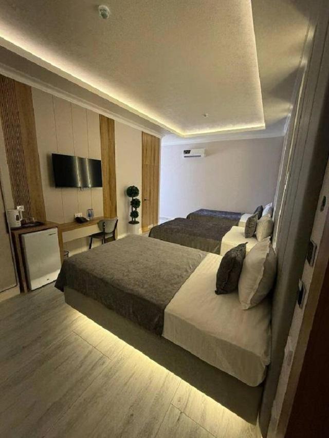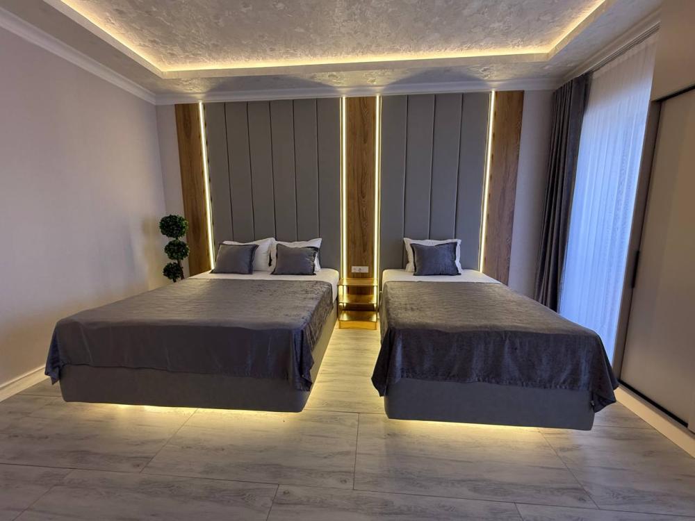 Семейный номер номер с 1 двуспальной и 1 односпальной кроватями площадью 30 кв. м. В числе удобств кондиционер, телевизор с плоским экраном, бесплатный Wi-Fi.