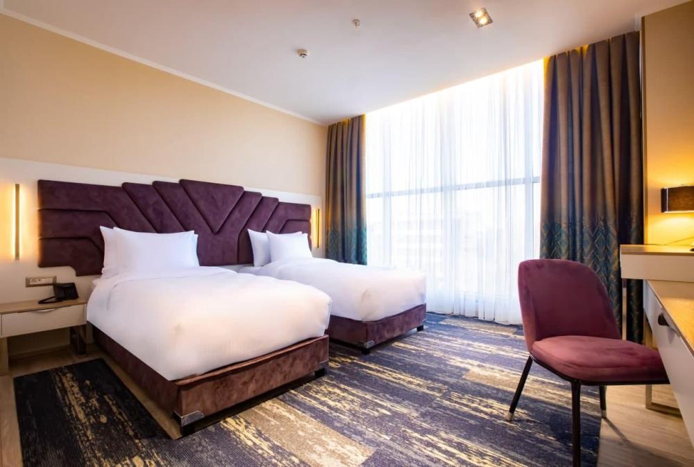 Двухместный номер с видом из больших окон на город или внутренний дворик отеля. В номере 1 двуспальная кровать king size или 2 односпальные кровати, письменный стол, телевизор с международными каналами, бесплатный Wi-Fi, сейф, мини-бар, кондиционер, собственная ванная комната.