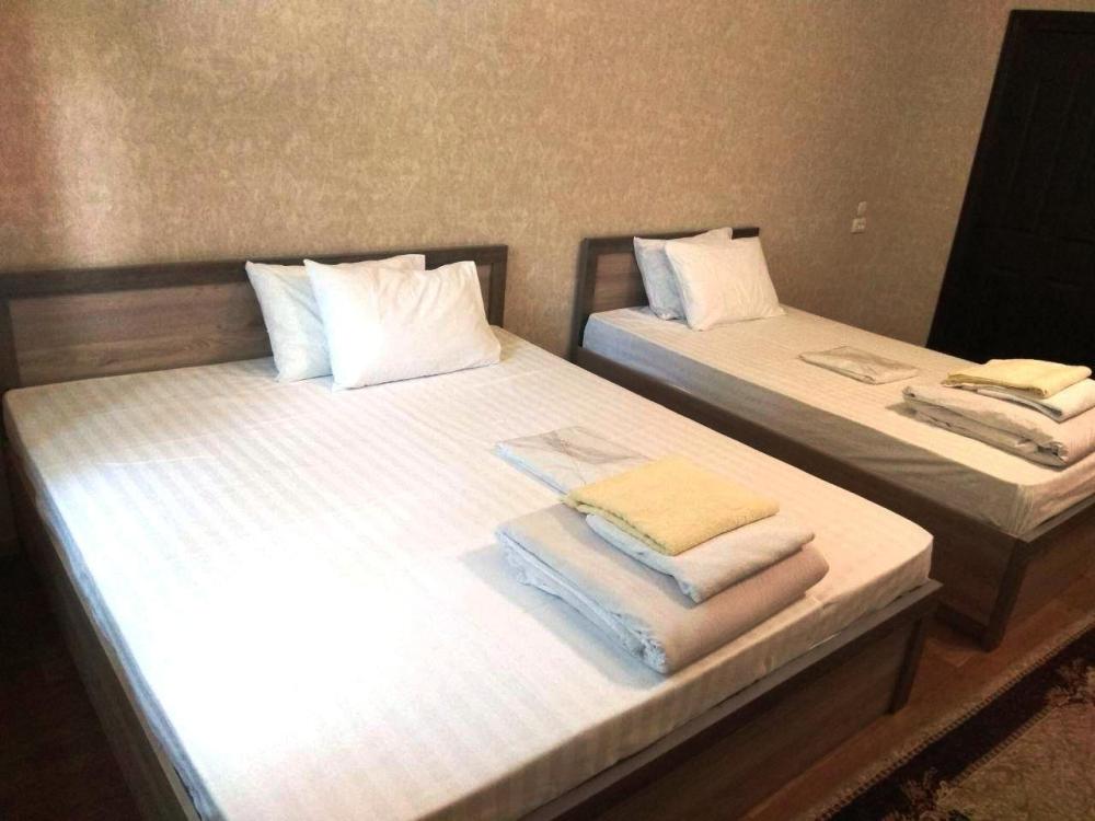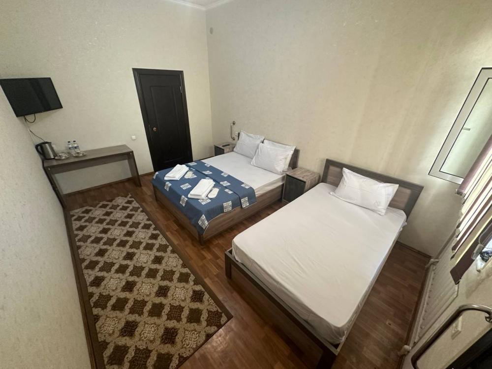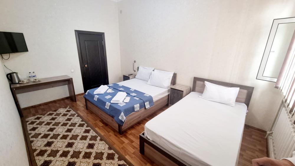 Трехместный номер категории стандарт с 1 односпальной и 1 двуспальной кроватью. В номере есть кондиционер, телевизор с плоским экраном, обеденная зона, чайник, посуда. В ванной комнате - душ, тапочки, полотенца и фен.