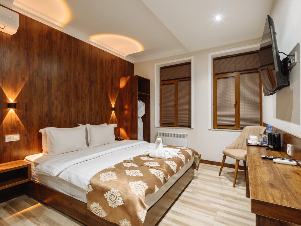Интерьер просторных номеров Делюкс номеров выполнен в европейском стиле, номер оснащен телевизором со спутниковыми каналами и кондиционером. Персонал гостиницы услужливый и доброжелательный.