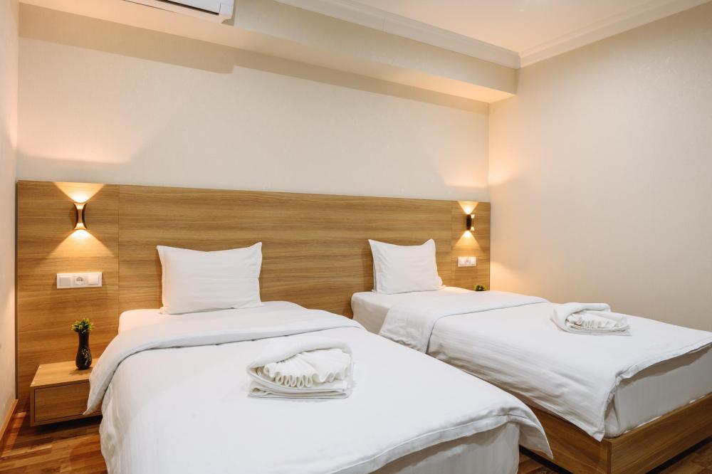 Интерьер номеров выполнен в европейском стиле, просторный номер оснащен тремя односпальными кроватями, кондиционером и телевизором с каналами спутникового телевидения, ванной комнатой.