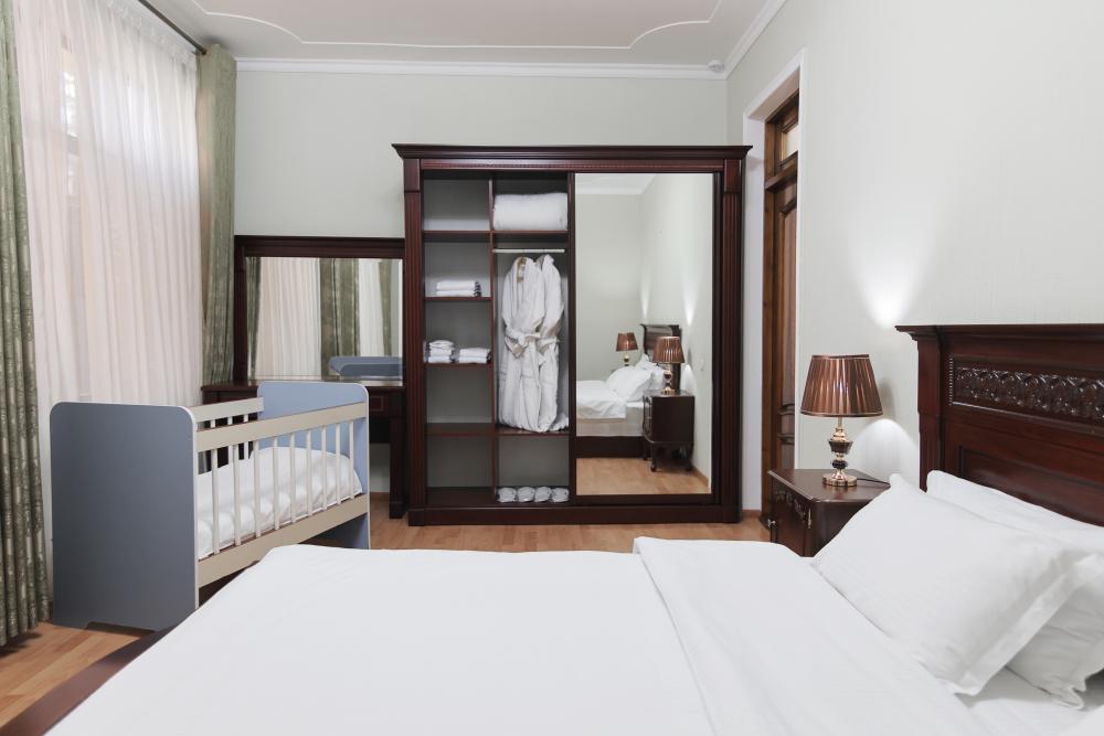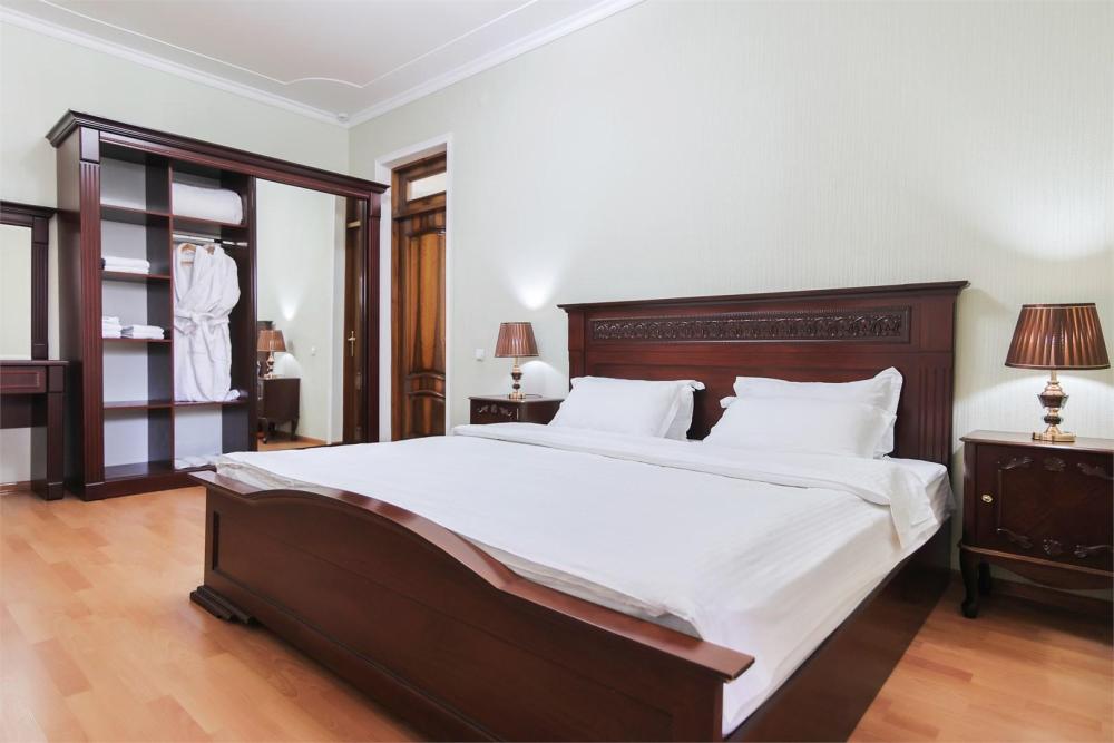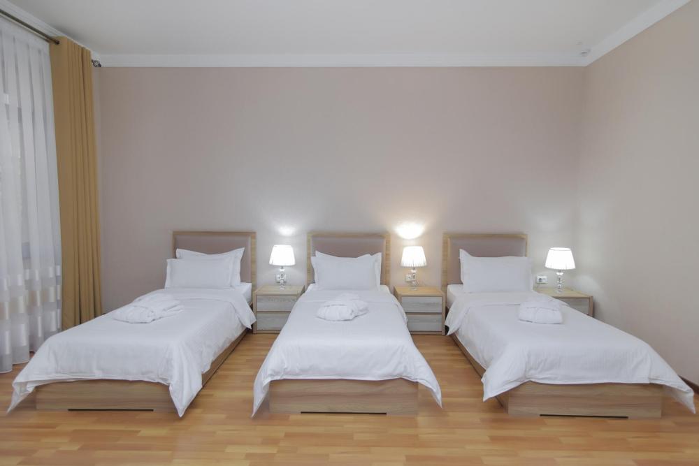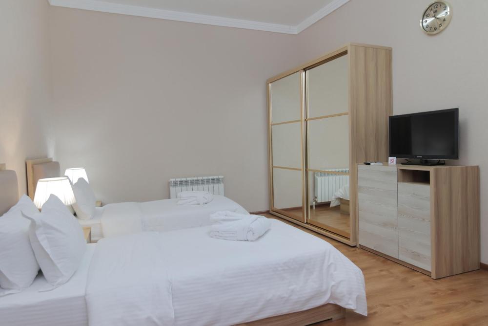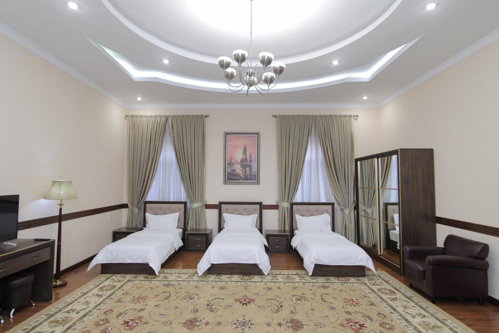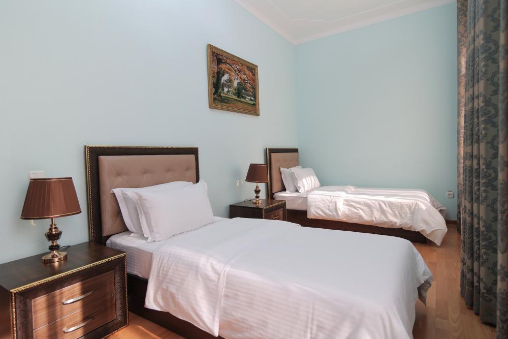 Номер категории «Стандарт» площадью от 60 кв.м. В номере две односпальные кровати и одна двуспальная кровать. В номере бесплатный Wi-Fi, кондиционер, холодильник, LCD телевизор диагональю 42", бутилированная вода, набор для приготовления чая и кофе. В ванной комнате - душевая кабина, комплект полотенец, набор для личной гигиены (шампунь, мыло, гель для душа), фен.