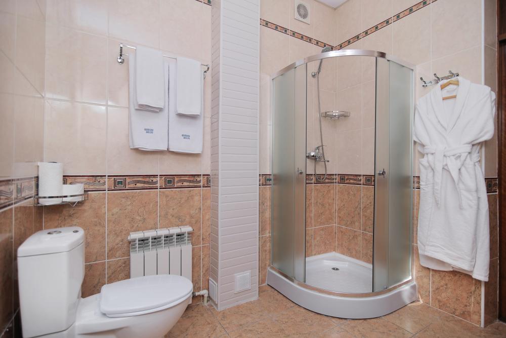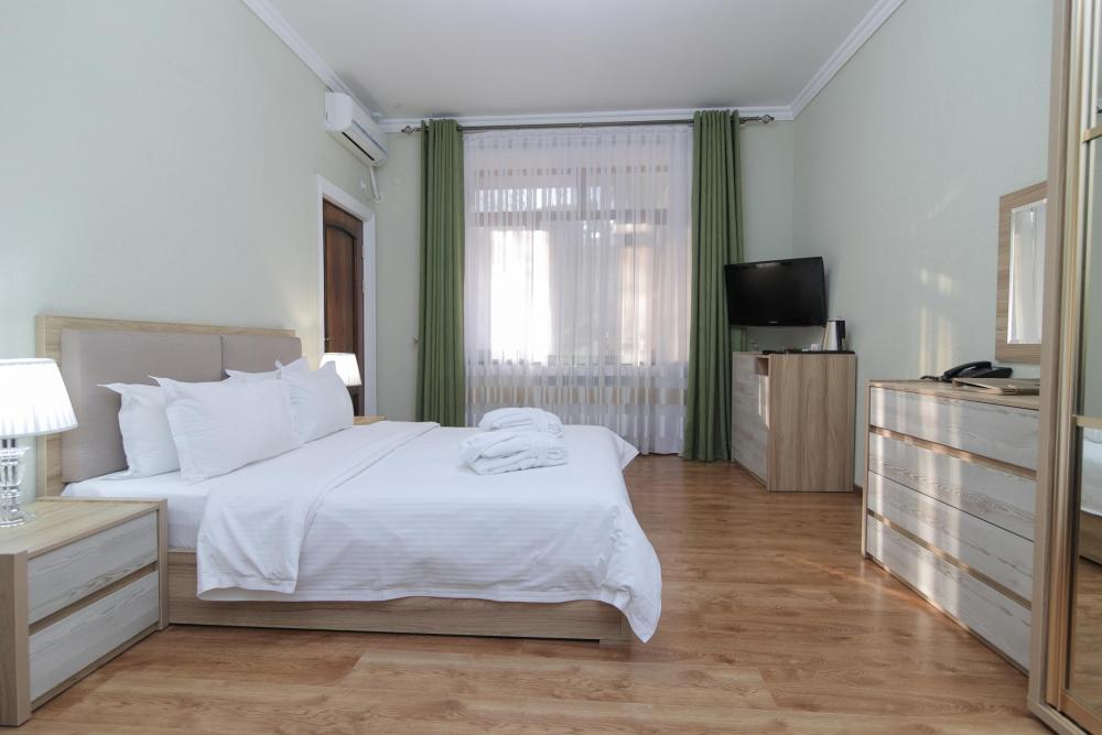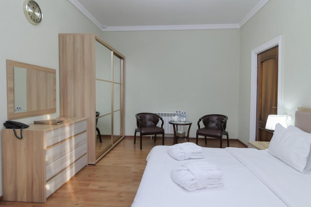 Номер категории «Стандарт» площадью от 40 кв.м. В номере бесплатный Wi-Fi, кондиционер, холодильник, LCD телевизор диагональю 42", бутилированная вода, набор для приготовления чая и кофе. В ванной комнате - душевая кабина, комплект полотенец, набор для личной гигиены (шампунь, мыло, гель для душа), фен.