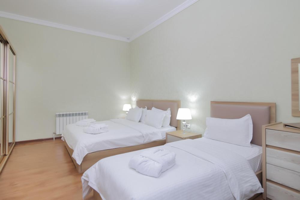 Номер категории «Стандарт» площадью от 100 кв.м с шестью одноместными кроватями. В номере есть кухня, две душевые комнаты, два санузла, бесплатный Wi-Fi, кондиционер, LCD телевизор 42", бутилированная вода, набор для приготовления чая и кофе. В ванной комнате комплект полотенец, средства личной гигиены, фен.