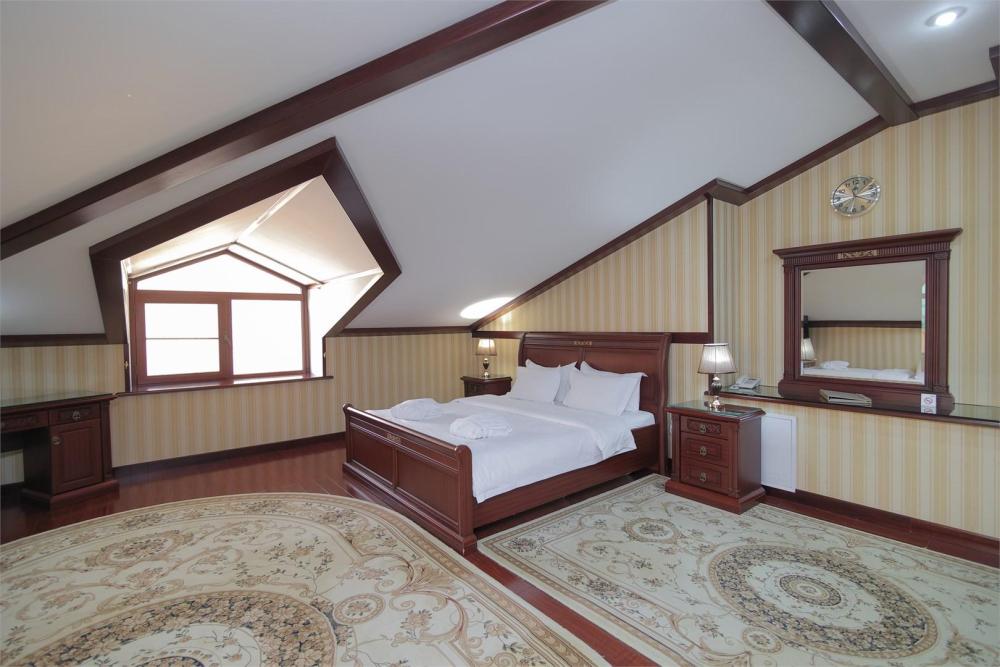 Номер категории «Люкс» площадью от 60 кв.м является лучшим в линейке предложенных категорий. Здесь все создано для уюта, комфорта и чувства дома в горах Хумсана. Уютный интерьер, монументальная обстановка, ортопедический матрас, обзорные окна в пол и чарующие виды на сад позволят гостям расслабиться и восстановить свои силы. В номере просторная большая кровать, дизайнерская мебель, бесплатный Wi-Fi, кондиционер, холодильник, LCD телевизор диагональю 42", бутилированная вода, набор для приготовления чая и кофе. В ванной комнате - душевая кабина, комплект полотенец, набор для личной гигиены (шампунь, мыло, гель для душа), фен.