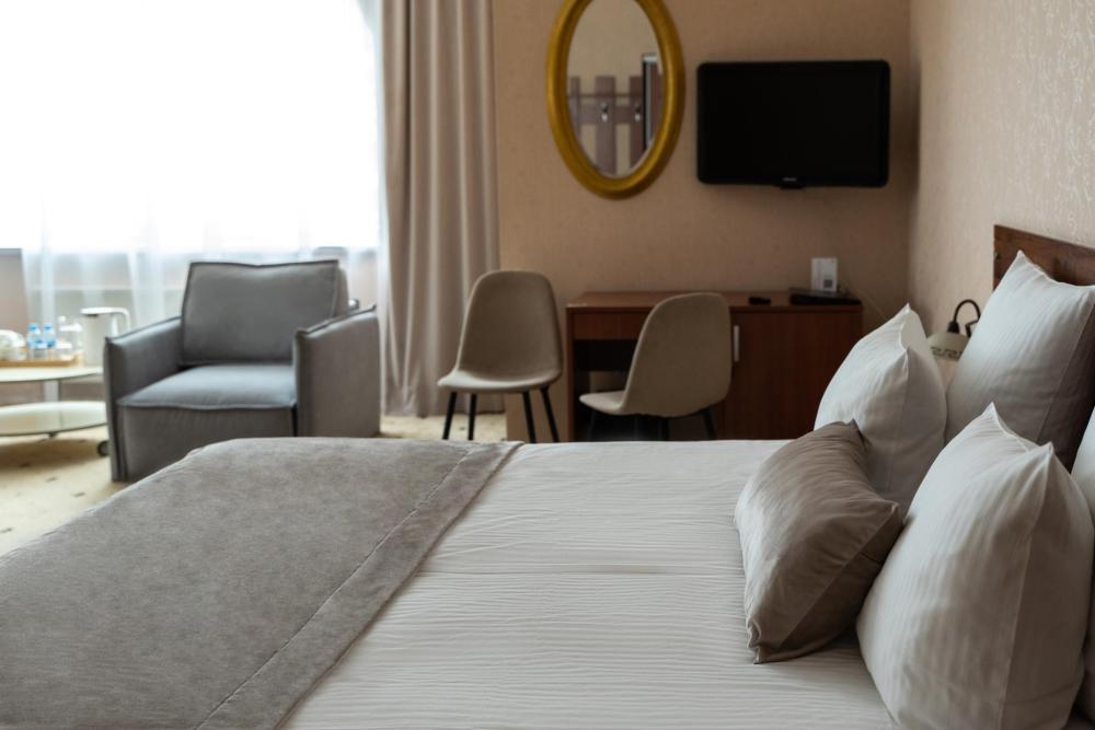 Уютный и просторный номер стандарт с размещением до 3 гостей, с прекрасным видом на озеро и лес. Дети до 3-х лет бесплатно (без предоставления доп. места). В номере предоставлены; холодильник, чайная станция, халаты, тапочки, полотенца, наборы для душа. В стоимость номера включены посещения: завтрак и посещение аква-термальной зоны (бассейн, сауна). Также в распоряжении гостей детская площадка на улице и детская комната в отеле. Заселение с 16.00, выезд в 13.00 Основная вместимость-2 гостя. Дополнительный гость с доплатой -1900 руб.