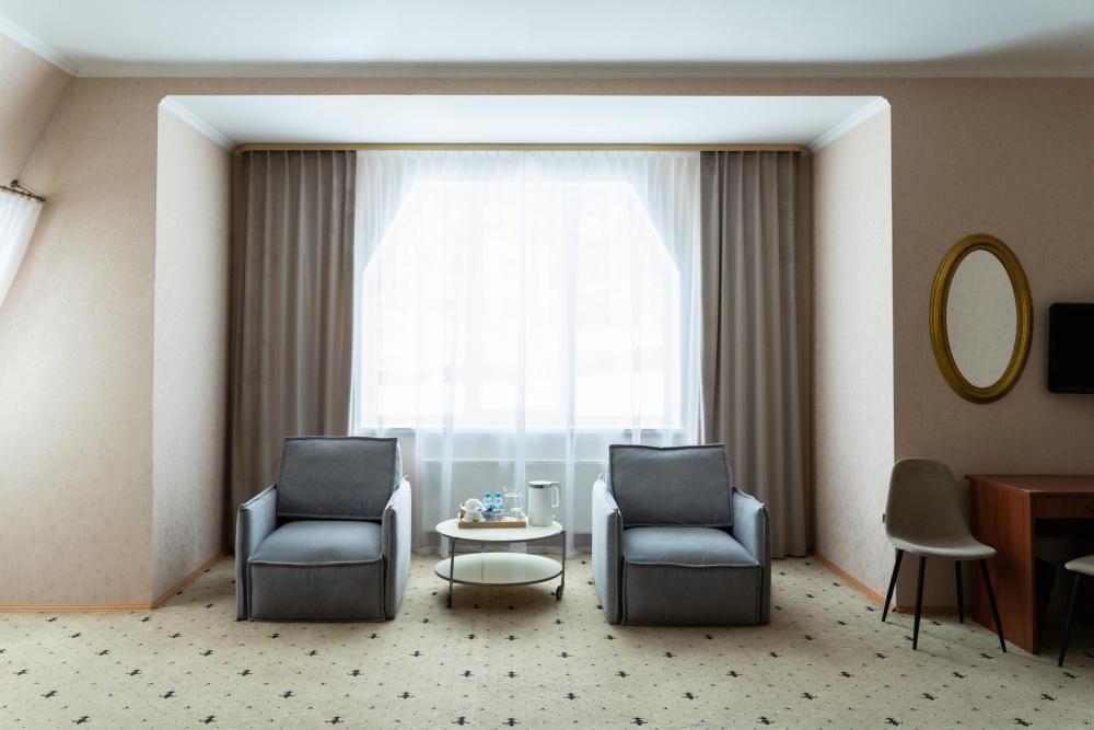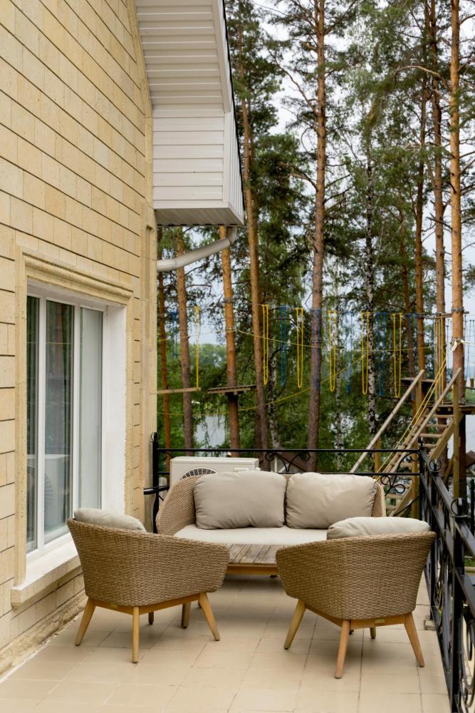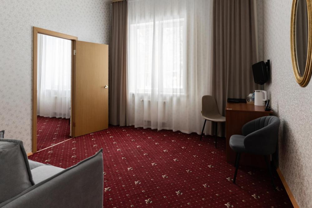 Уютный и просторный двухкомнатный номер делюкс на 1-2 человека с прекрасным видом на озеро и лес. Дети до 3-х лет бесплатно (без предоставления доп. места). Имеется возможность размещения 1 дополнительного гостя. В стоимость номера включены посещения: Бассейна, Сауны, Тренажерного зала, Бильярда. Также в распоряжении гостей детская площадка на улице и детская комната в отеле. Выезд в 13:00, заезд в 16:00. Также в номере есть возможность размещения 2 дополнительных мест, стоимость дополнительного места 1900 руб.