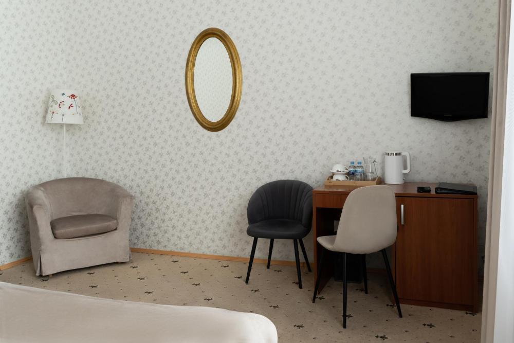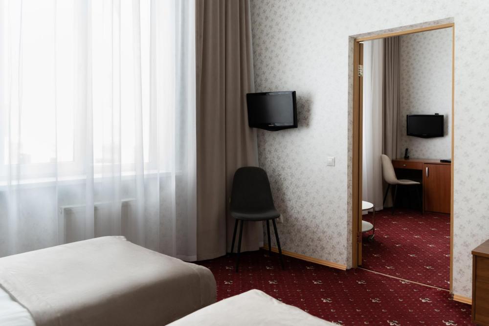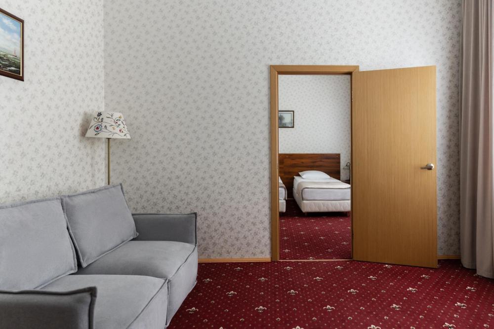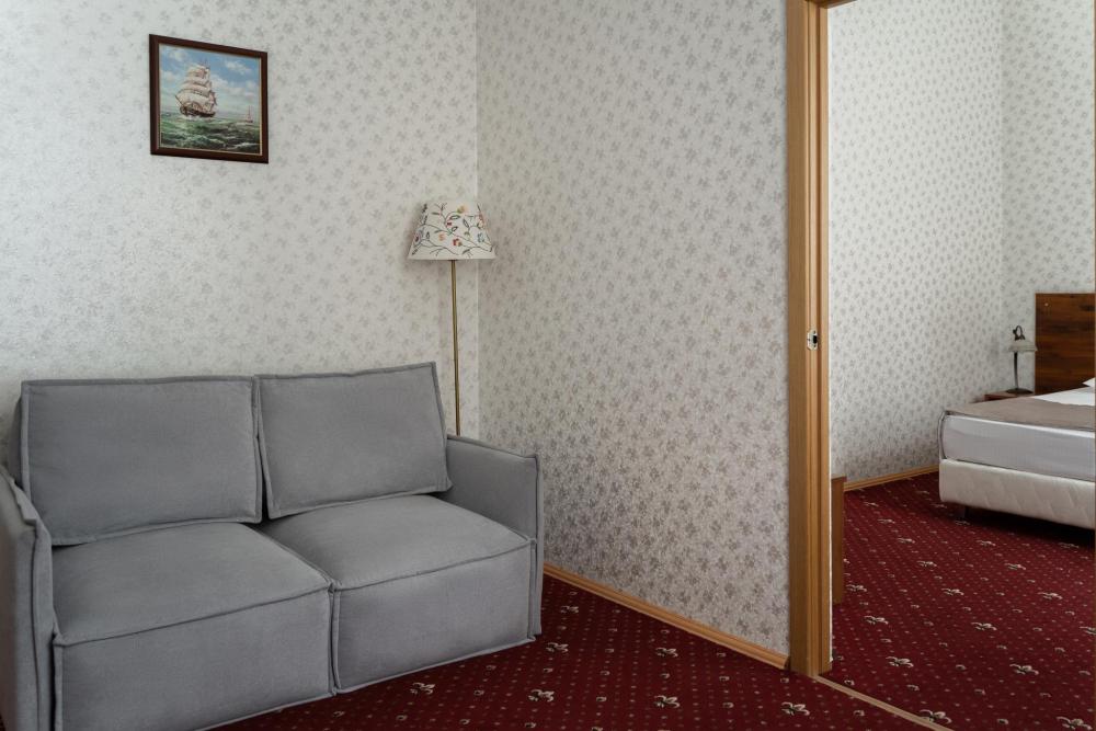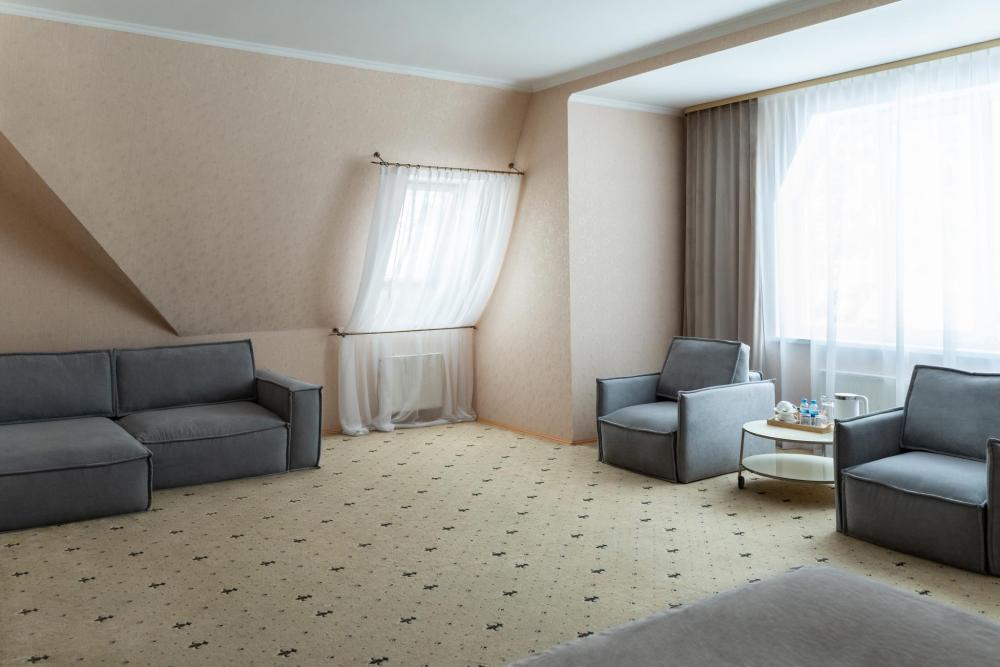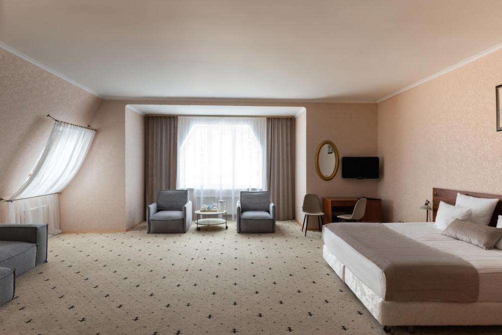Уютный и просторный двухкомнатный номер с размещением до 4 гостей. Прекрасный вид на озеро или лес. Дети до 3-х лет бесплатно (без предоставления доп. места). В стоимость номера включены: завтрак и посещение аква-термальной зоны (бассейн, сауна). Также в распоряжении гостей детская площадка на улице и детская комната в отеле. В номерах предоставлены: холодильник, чайная станция, халаты, тапочки, полотенца, наборы для душа. Заселение с 16.00, выезд в 13.00. Основная вместимость номера-2 гостя. Дополнительный гость с доплатой -1900 руб.