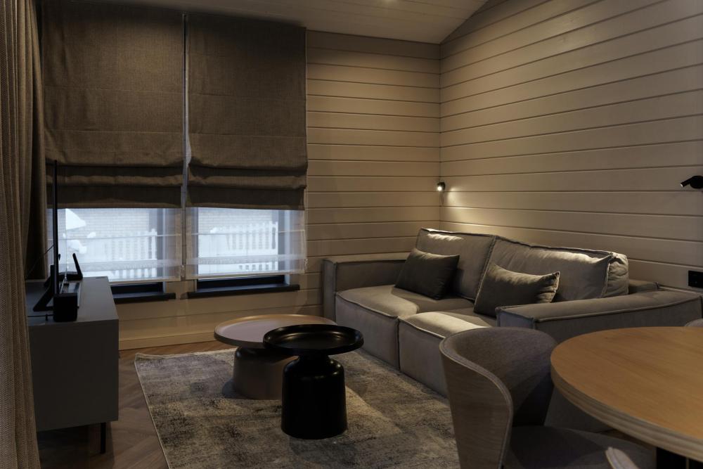 Современный и просторный Барнхаус с 2 спальнями и гостиной, с собственной террасой и красивым видом на озеро и внутреннюю территорию отеля, вмещает до 7 гостей. Дети до 3-х лет бесплатно (без предоставления доп. места). В стоимость барна включены посещения: Бассейна и сауны 1.5 часа в сутки (вместимость комплекса до 10 человек). Также в распоряжении гостей детская площадка на улице и детская комната в отеле.