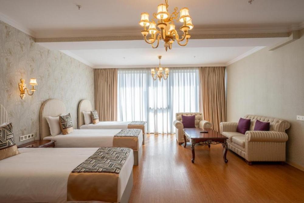 Просторный семейный номер с кондиционером, звукоизолированными стенами, собственной ванной комнатой с ванной и биде, гостиным уголком, шкафом для одежды, телевизором с плоским экраном и кабельными каналами. В номере установлены 3 кровати.