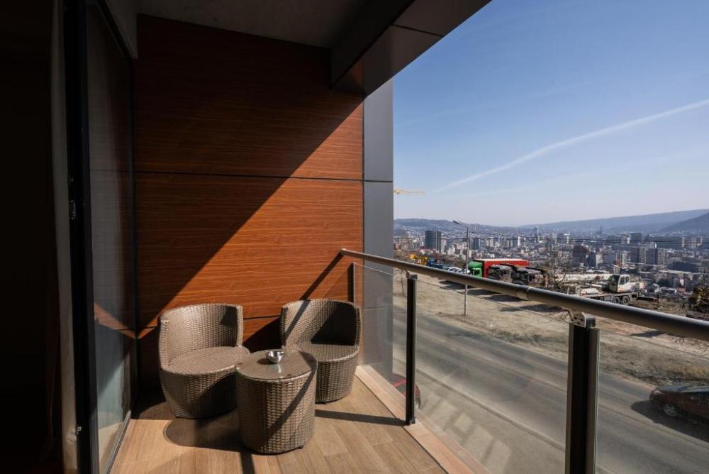 Просторный двухместный номер с 1 кроватью, кондиционером, звукоизолированными стенами, балконом с видом на город и собственной ванной комнатой с ванной. В номере установлена 1 кровать.