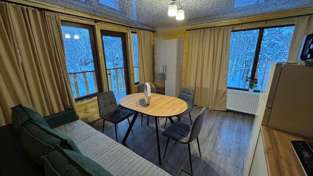✅ Территория комплеска 7 Небес ✅ Бесконтактное заселение. ✅ Текстиль премиум качества ? Максимальное число гостей - 4 ? Комфортное число гостей - 4 ?️ Бесплатная парковка ?? Спальные места: — Двуспальная кровать queen-size - 1 шт. — Диван-кровать 80/160*190 - 1 шт; ❤️ Удобства: — ☁️ Чистое выглаженное белье премиум класса, пушистые полотенца. — ?️ Оборудованная кухня: посуда, холодильник, микроволновка, кастрюли, сковорода, электрический чайник, чай, кофе, сахар. — ♨️ Индивидуальное отопление — ? WI-FI, телевизоры, кабельное телевидение. — ? душ, стиральная машина, фен, утюг, гладильная доска, тапочки, сушилка, шампунь, мыло. ?️ Объекты рядом: СПА центр 7 небес ⌛ Расчетный час: Заезд с 14:00. Ранее заселение бесплатное, при наличии возможности. Выезд до 11:00. ❗ Правила проживания: — У нас не курят. — У нас не проводятся шумные мероприятия. — При себе необходимо иметь паспорт — При отмене позднее 14 дней до даты заселения бронь не возвращается. ? Мы поможем вам: — ?с трансфером от/до аэропорта или железнодорожного вокзала; — ?с выбором горнолыжного инструктора или горного гида; — ?найти ответы на все ваши вопросы, связанные с нашим родным регионом ; ? ?? Так же мы можем предложить Вам аренду : Детские кроватки Стульчики Бинокли Рюкзак-переноску Треккинговые палки ❤️ Влюбляйтесь в горы, друзья! А мы постараемся сделать ваше свидание удобным и приятным!