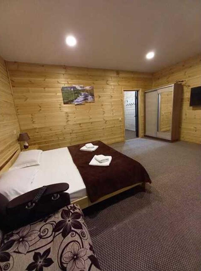 Комната стандарт четырехместная, общей площадью 30 кв.м. Оснащение: двухспальная кровать, диван, выглажeннoe бельe премиум клaсса, пушистые полотенца, холодильник, чайник, телевизор, ванная комната с душем, сауна.