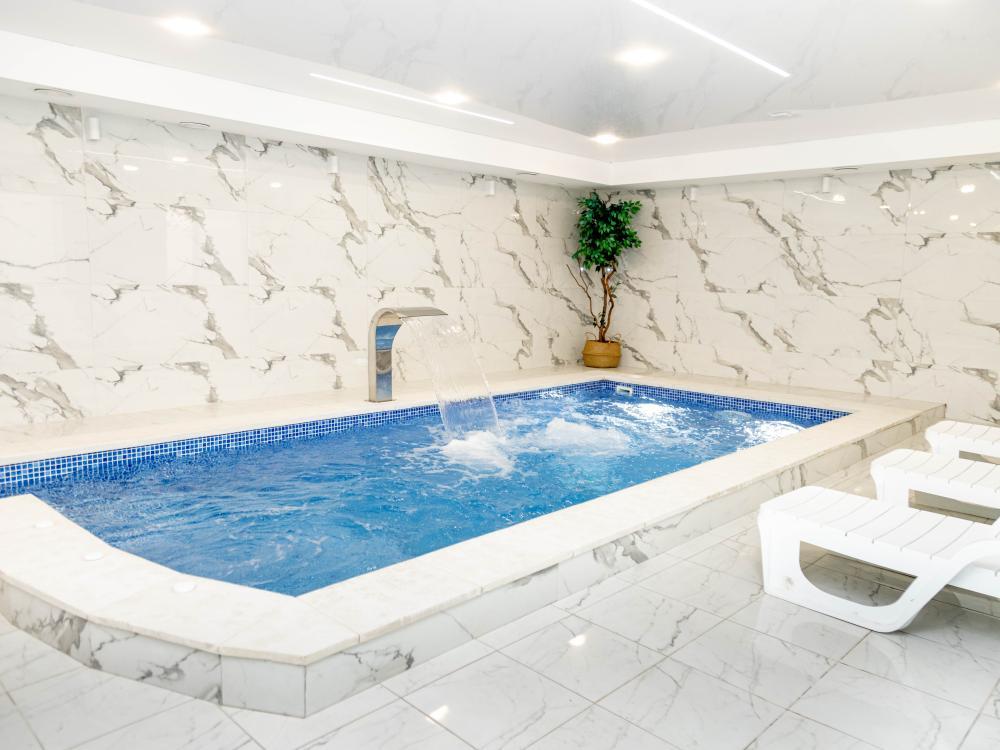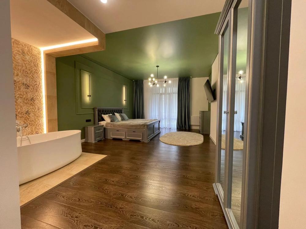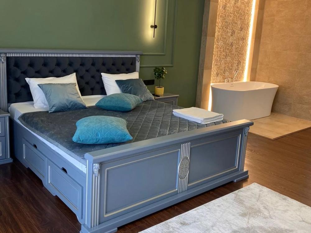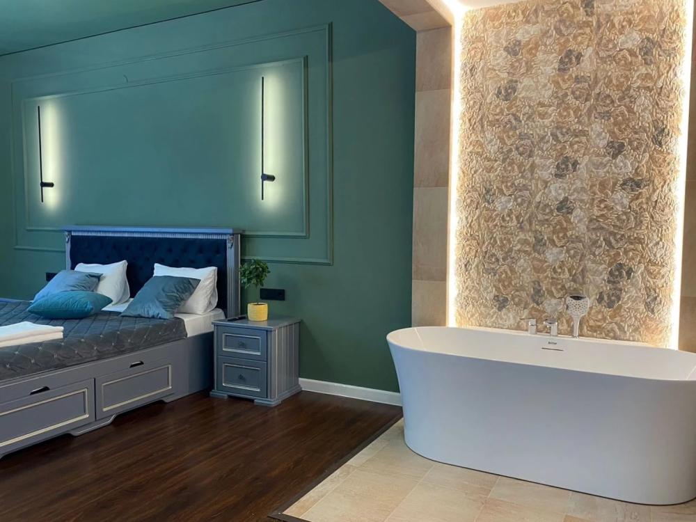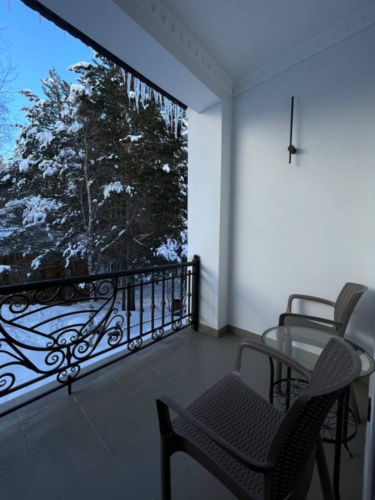 Номер категории “Люкс” (55 кв.м) оборудованы: двумя комнатами (гостиная c раскладной диван-кроватью и спальней Luxe, со встроенной овальной ванной Redo); спальным гарнитуром (большая двуспальная кровать, прикроватные тумбочки, комод, бра); несколькими видами освещения; модулем управления освещением рядом с кроватью; мини-холодильником; чайной станцией (принадлежности на две персоны); консольным столиком; двумя SMART-телевизорами с подпиской на онлайн кинотеатры; ламинатным покрытием пола с подогревом; ванной комнатой (душевая кабинка с банными принадлежностями, LED-зеркало, гигдуш, приточный рекуператор воздуха, фен, змеевик для сушки полотенец); лоджией с видом на ущелье с кофейным столиком и двумя посадочными местами.