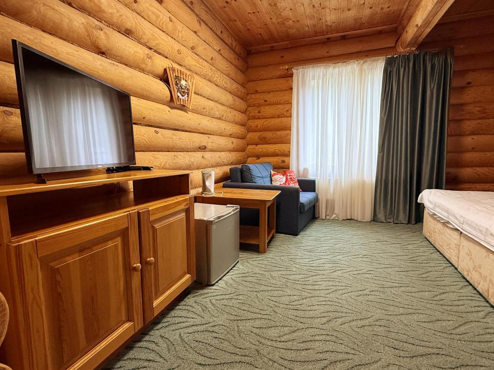Просторный двухкомнатный номер состоит из гостиной и уютной спальной комнаты. Оснащён двуспальной кроватью и диваном.