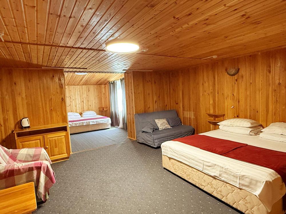 Комфортабельные апартаменты площадью 80 кв.м. рассчитаны на пребывание 4 человек, оснащены одной двуспальной и двумя односпальными кроватями, а так же диваном. Имеются все необходимые удобства.