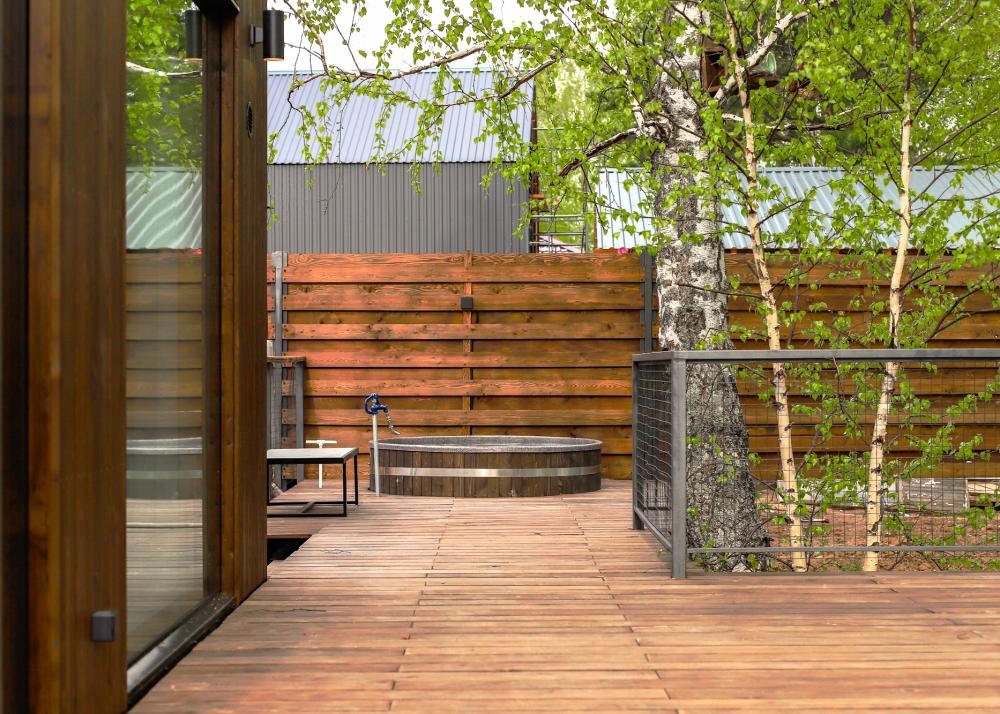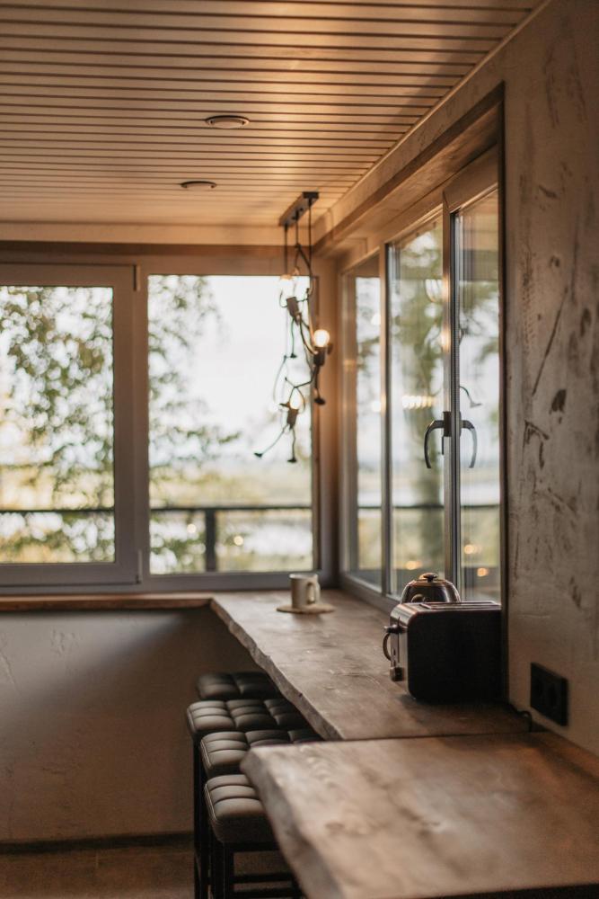 Дом-модуль для 4 гостей. Спальня: двуспальная кровать с ортопедическим матрасом, мягкий свет, шкаф для вещей. Гостиная: диван-трансформер, телевизор с Яндекс Алисой, настольные игры. Кухня: Всё для готовки — индукционная плита, кофемашина, посуда, специи. Санузел: душ, халаты, тапочки, наборы косметики, фен. Тепло и уют: тёплый пол, 2 обогревателя, Wi-Fi. Парящая терраса над обрывом. Зона барбекю: мангал, горелка, шампуры, уголь. Уличный обеденный стол, детский стульчик, закрытая парковка на 2 авто. Видеонаблюдение 24/7.