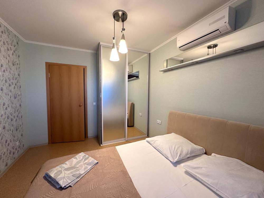 Уютная двухкомнатная квартира на 12 этаже 17-этажного дома с лифтом. Без залога. Курение запрещено, но можно с детьми. Животные не допускаются. В квартире есть все необходимое для комфортного проживания: кабельное/цифровое ТВ, стиральная машина. Из окон открывается вид на улицу. Кухня оборудована современной техникой: холодильник, электрическая плита, духовой шкаф. Обеденная зона рассчитана на пять человек. В ванной комнате — современная сантехника. Бесконтактное заселение обеспечивает удобство и безопасность. Парковка доступна на улице. Отчетные документы предоставляются.