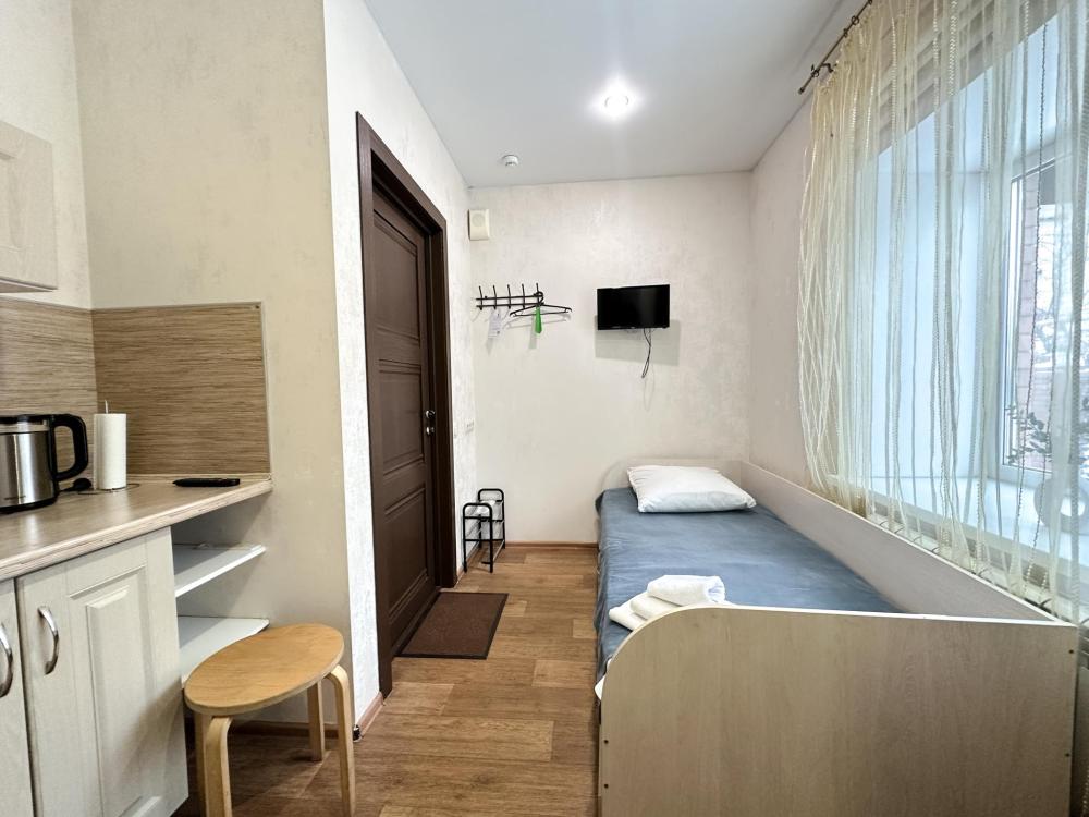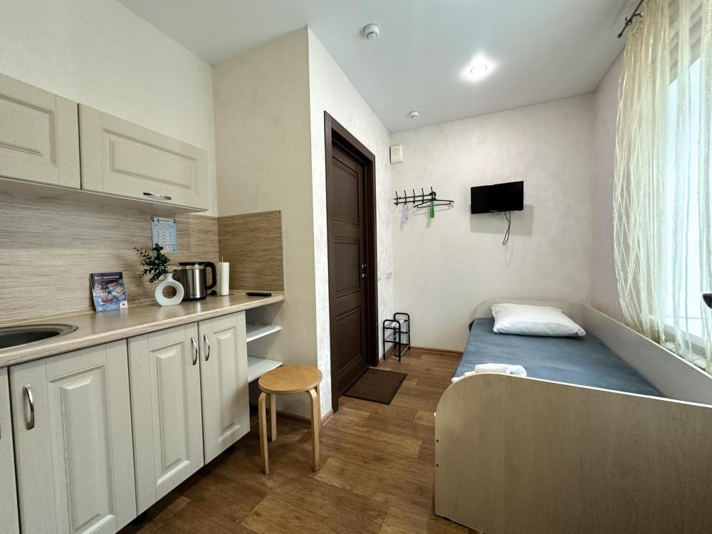 Одноместный номер категории "стандарт", 12м2, оснащен мини-кухней: плита, чайник, вся необходимая посуда. Приятный бонус в виде чая и конфет. Собственная ванная комната с душем. Комплект полотенец.Телевизор и бесплатный wi-fi. Услуги по доставки еды, трансферу, прачечной.