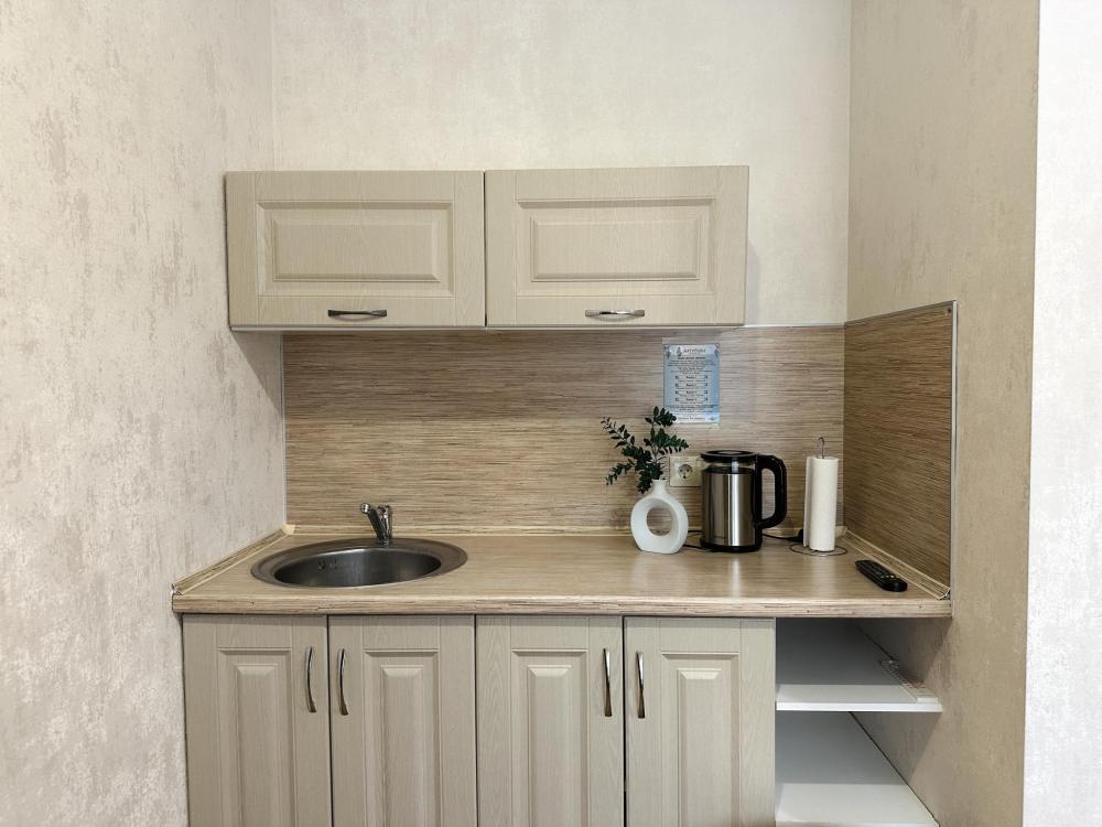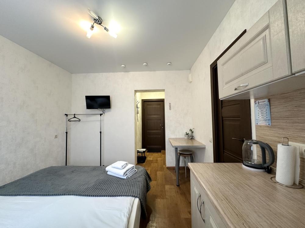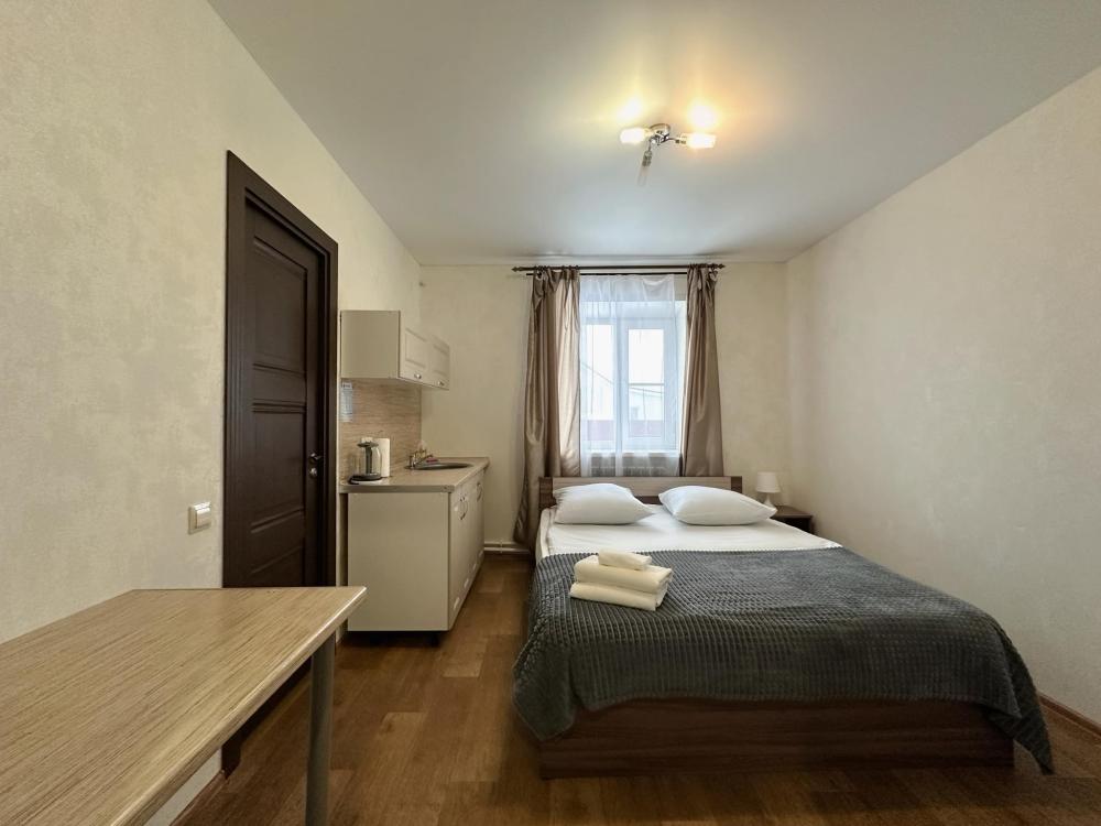 Двухместный номер с 1 кроватью: Номер стандарт, 16м2, оснащен мини-кухней: плита, чайник, вся необходимая посуда. Приятный бонус в виде чая и конфет. Собственная ванная комната с душем. Комплект полотенец. Кондиционер, телевизор и бесплатный wi-fi. Услуги по доставки еды, трансферу, прачечной.