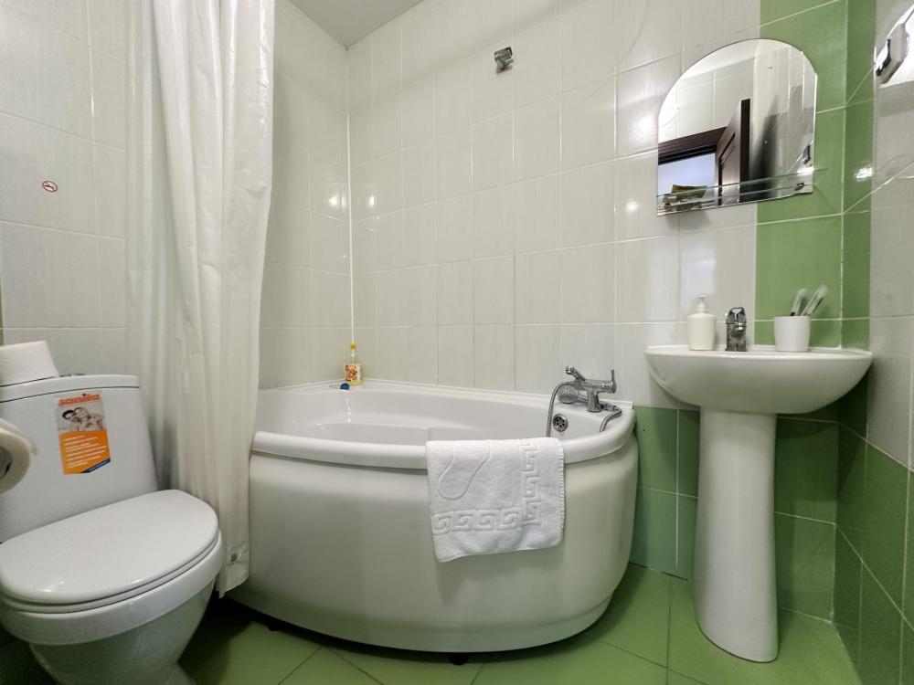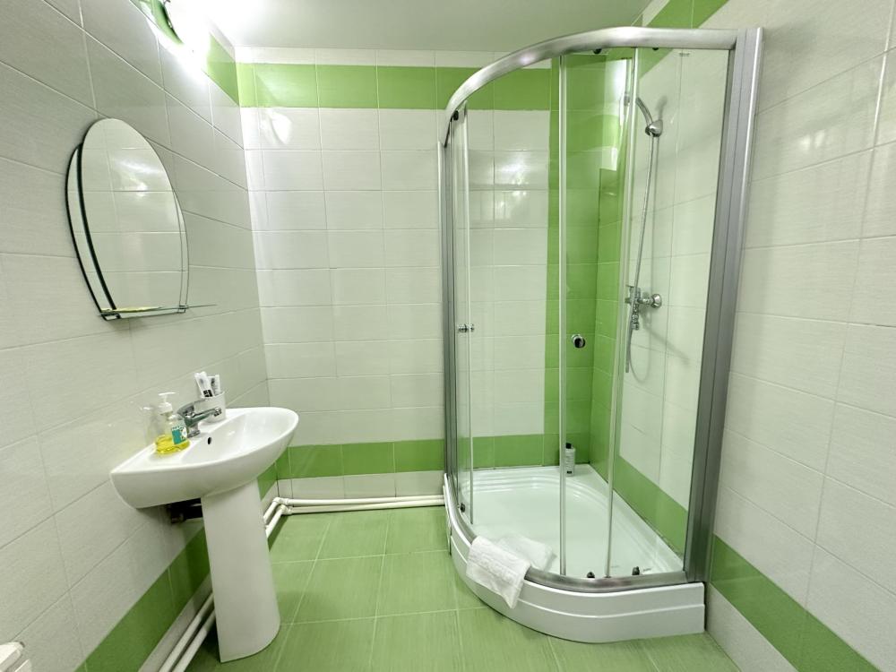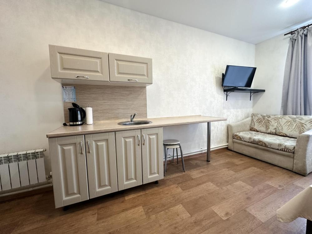 Трёхместный номер с двуспальной кроватью и односпальным диваном: Улучшенный номер, 20м2, оснащен мини-кухней: плита, чайник, вся необходимая посуда. Приятный бонус в виде чая и конфет. Собственная ванная комната с душем. Комплект полотенец.кондиционер, телевизор и бесплатный wi-fi. Услуги по доставки еды, трансферу, прачечной.