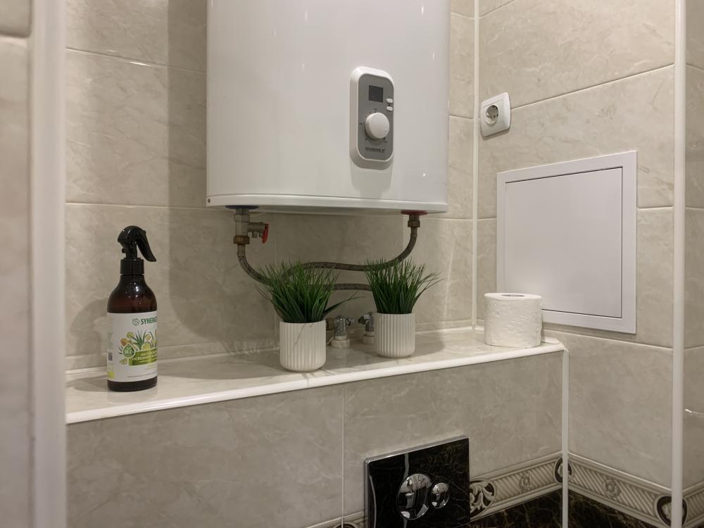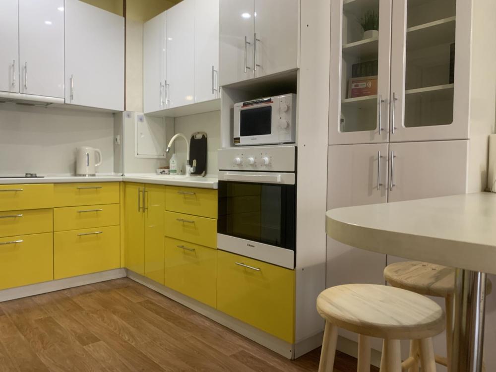 Интерьер апартаментов выполнен в светлых тонах с яркими акцентами. Современная кухня, оборудованная всем необходимым для приготовления пищи, кухонный гарнитур, обеденный стол и стулья, большой вместительный холодильник. Диван, плазменная панель и доступ к высокоскоростному Wi-fi. В спальне располагается великолепная двуспальная кровать, комод, прикроватные столики. Ванная комната оборудована необходимым, гостям предоставляются средства гигиены и полотенца.