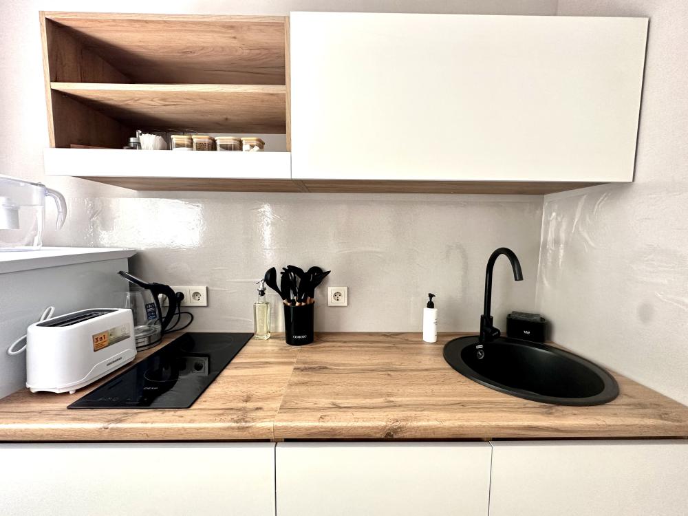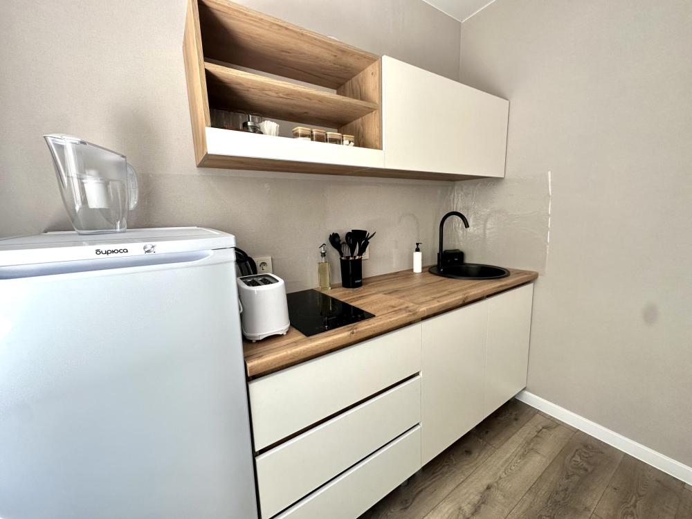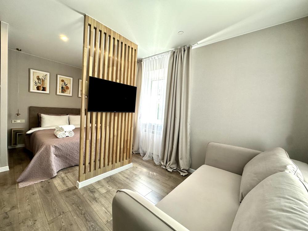 Что есть в квартире: - Двуспальная кровать - Диван - Полностью оборудованная кухня (электрическая плита, холодильник, микроволновка, электрический чайник, тостер) - Посуда, приборы, кастрюля и сковородка - Утюг - Постельное бельё и полотенца - Фен - Wi-fi - Телевизор - Стиральная машинка