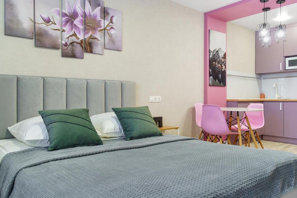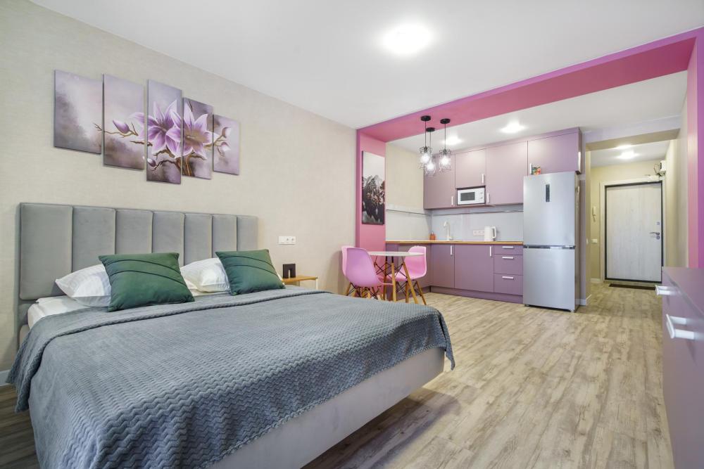 Светлая лаконичная студия с современным дизайном. Идеальный вариант для размещения 2 человек! Дом расположен удачно: отсутствует шум с улицы, отличная транспортная развязка, многообразие кафе и магазинов. Есть вся необxoдимaя тexникa: холодильник, микрoволнoвaя пeчь, элeктpичeскaя плитa, стиpальная машина, телeвизор, фeн, утюг. К вашему удобству Спутниковое ТВ, Wi-Fi.