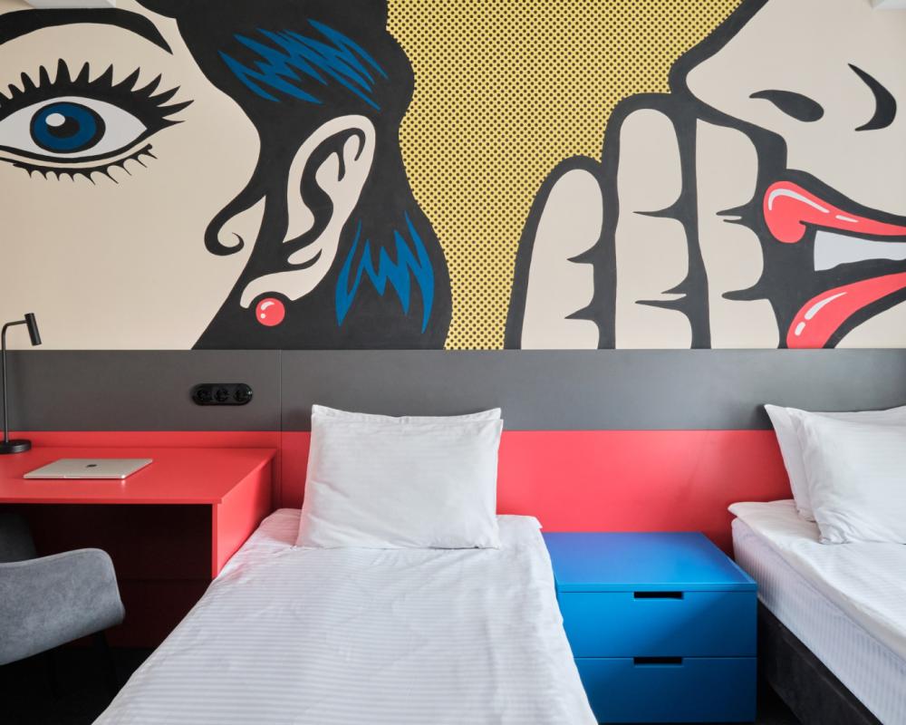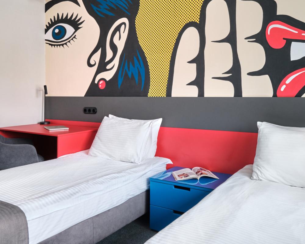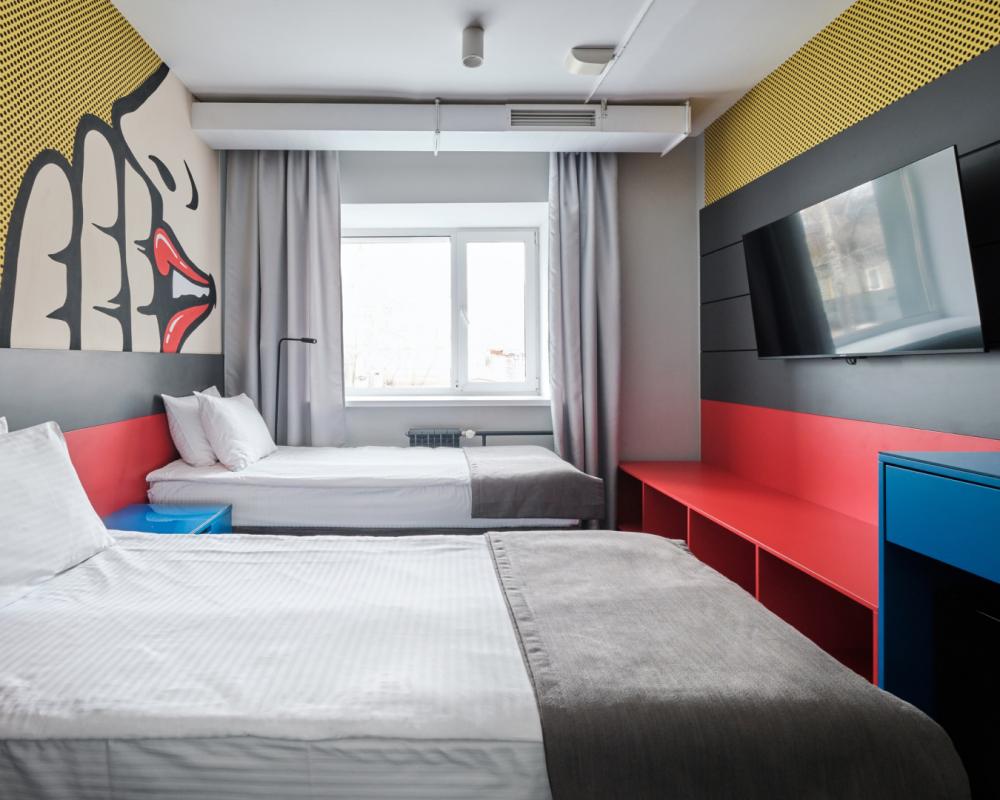 Номер эконом с двумя односпальными кроватями. Внимание! Санузлы расположены на этаже. - Две кровати с размерами 90х200 см; - анатомический матрас и сатиновое постельное белье; - гипоаллергенные подушки и одеяло; - ЖК телевизор с функцией SMART; - бесплатный высокоскоростной WI-FI; - легкодоступные точки для зарядки электронных устройств; - Шкаф - Рабочее место - Зеркало в полный рост - Тапочки