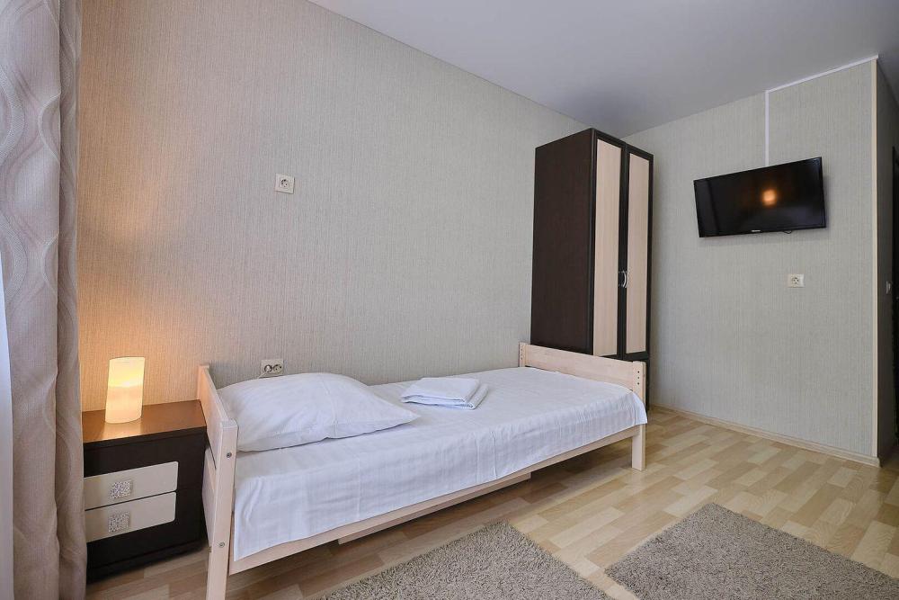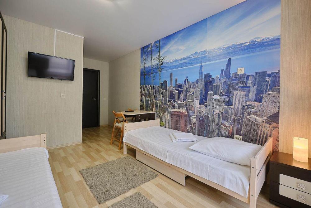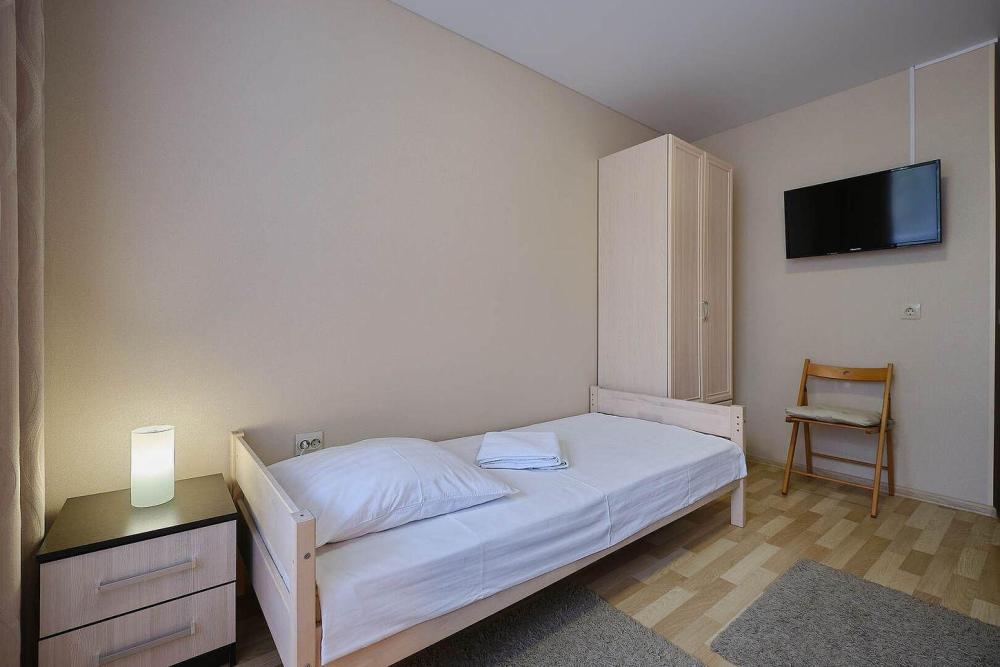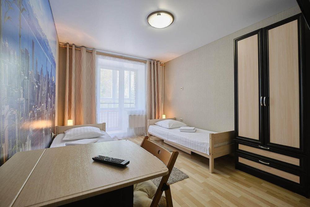 В номере : две односпальные кровати, постельное белье, полотенца, гель/шампунь, телевизор, Wifi, фен для волос. Душевая-туалет вне номера. Просим обратить внимание, вторая односпальная кровать находится в выдвижном отсеке первой односпальной кровати.