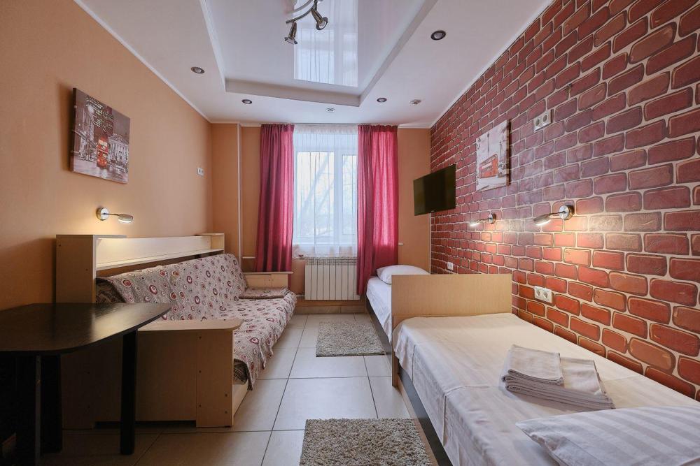 В номере : две односпальные кровати, диван-кровать, постельное белье, полотенца, гель/шампунь, телевизор, Wifi, душевая-туалет в номере, фен для волос.