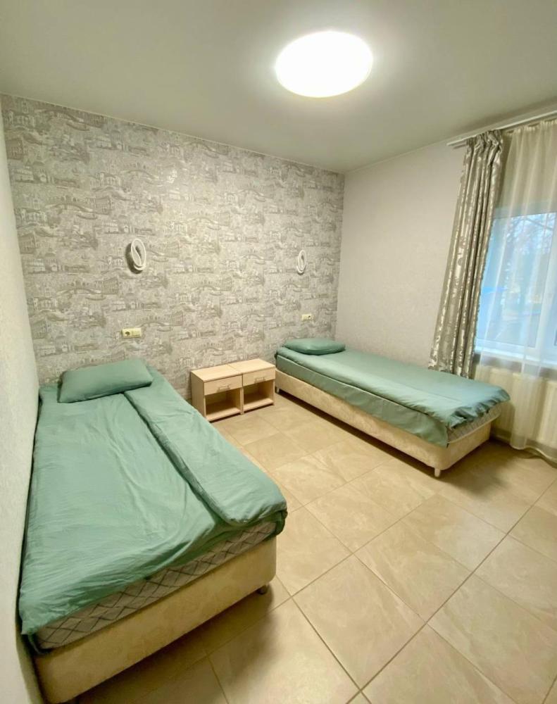 В номере: 2 односпальные кровати; телевизор со спутниковыми каналами; собственная ванная комната; свежее и чистое постельное белье; махровые полотенца на каждого гостя; косметические принадлежности и тапочки; теплый пол.